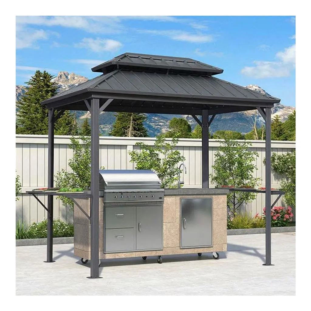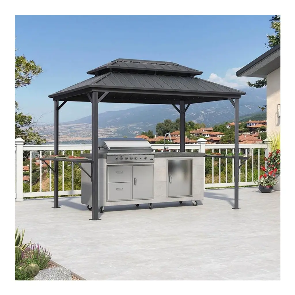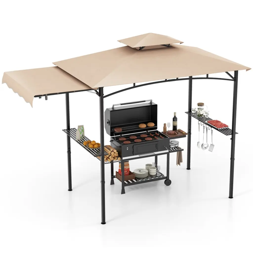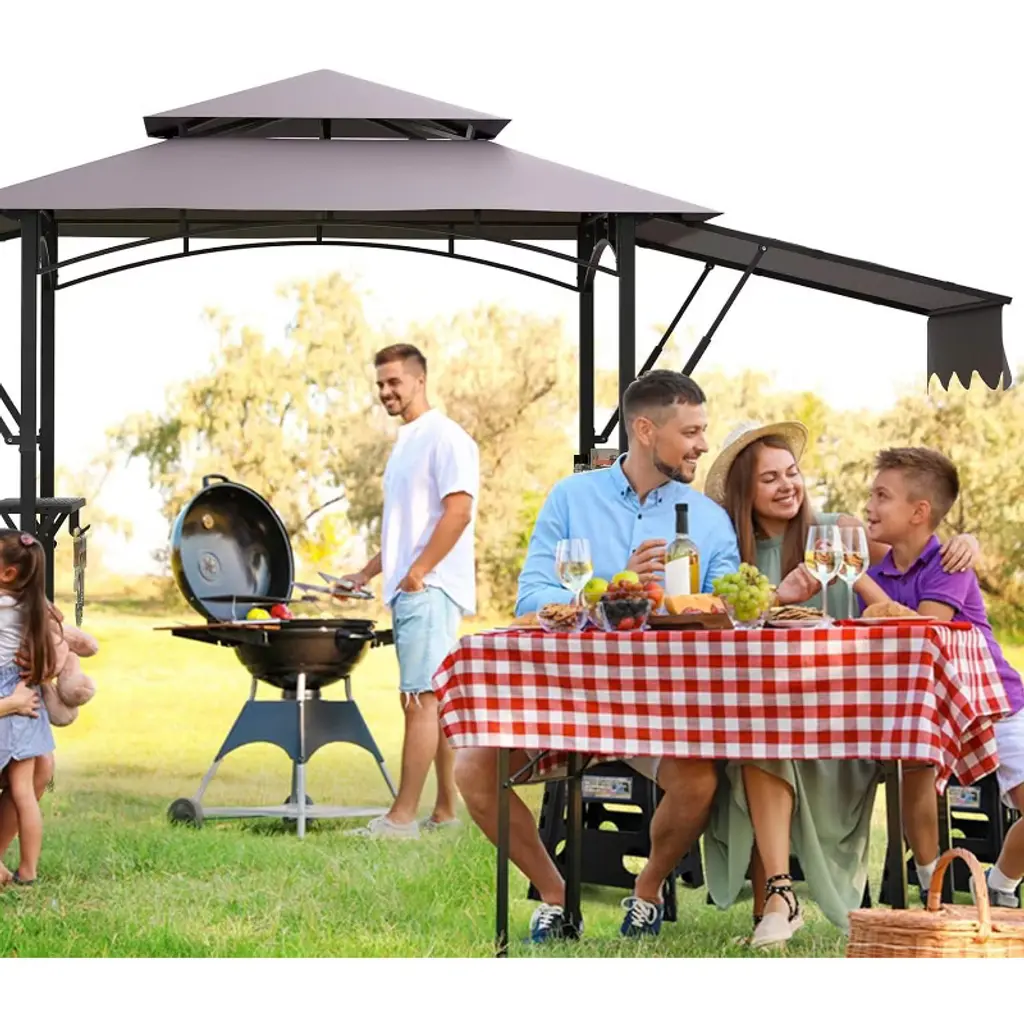 8x5ft Grill Gazebo Canopy w/LED Lights, 2 Shade Panels, Bottle Opener & Hooks – BBQ Shelter for Backyard, Patio, Garden