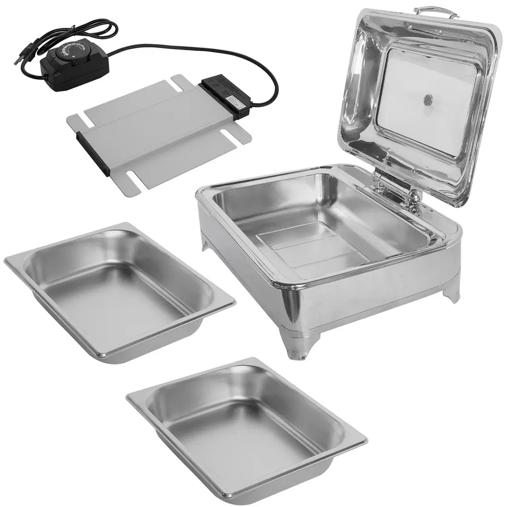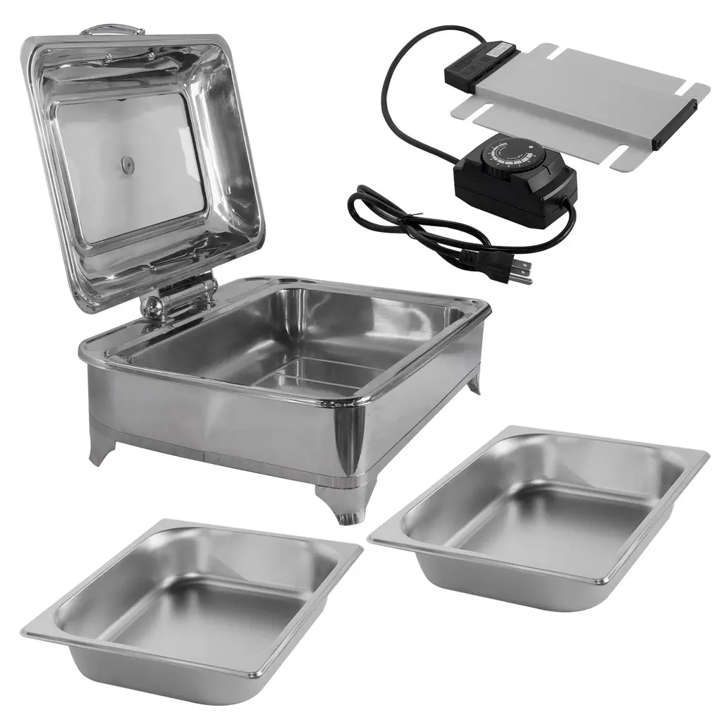 Specification: Key Features: Description: This 9L/9.5QT Electric Chafing Dish offers a versatile and efficient solution for keeping food warm at events. Featuring a temperature range of 45-80℃ (113-176℉), it allows easy temperature adjustments for perfect food warmth. The durable stainless steel construction and glass lid ensure long-lasting use, while the aluminum alloy heating plate guarantees even heat distribution. The large 9L capacity is ideal for catering to larger groups, and the removable food tray makes serving and cleaning effortless. Perfect for weddings, parties, buffets, and catering, this food warmer delivers convenience and reliability for any occasion.