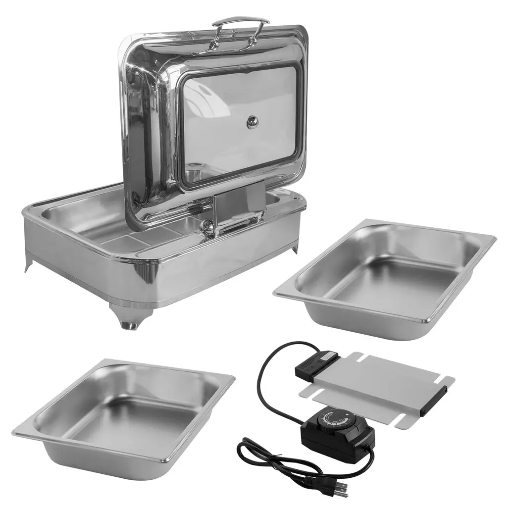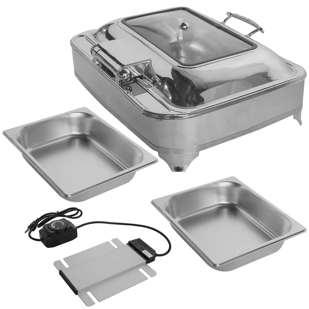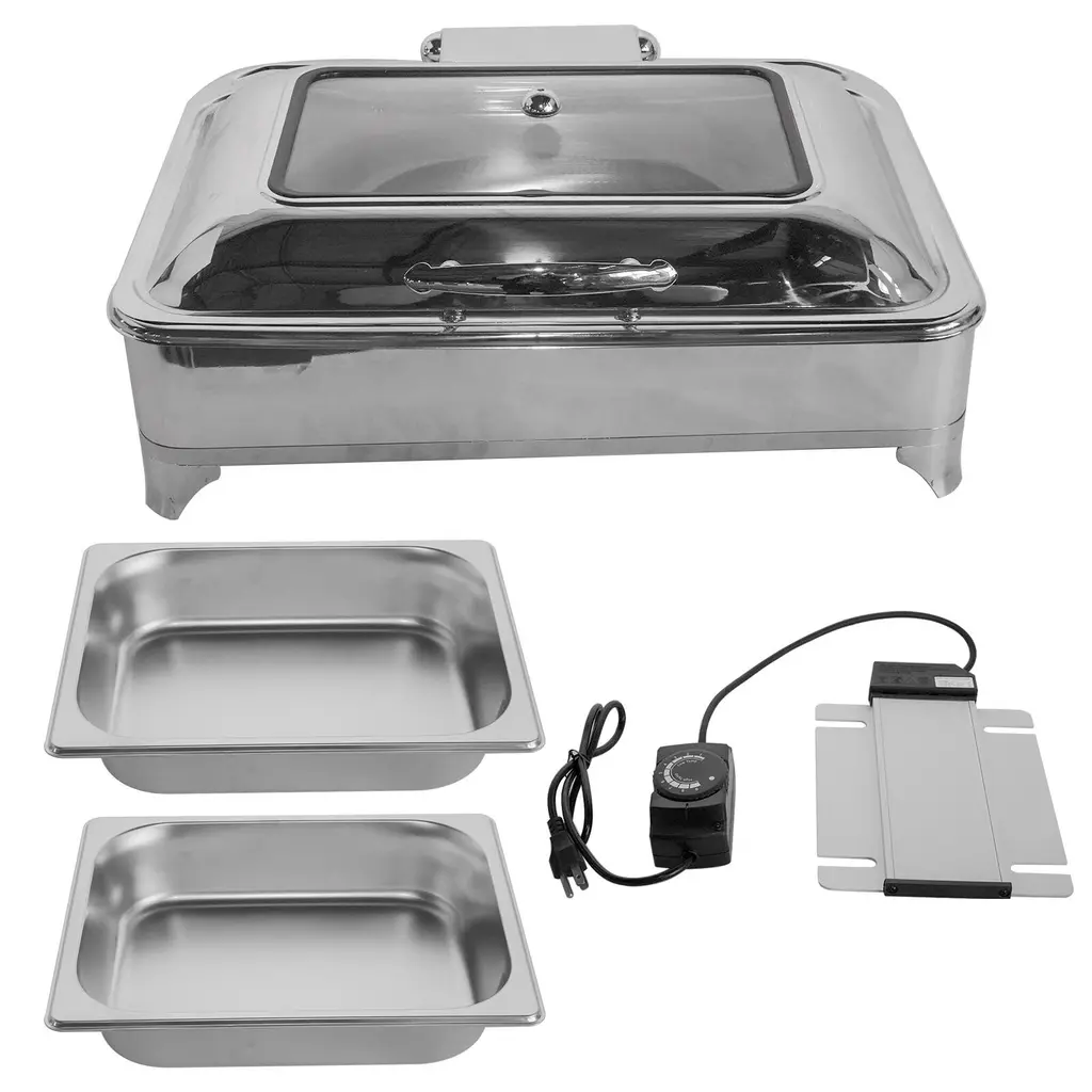9L Electric Chafing Dish With Glass Lid, 400w Food Warmer For Catering And Buffets - 22.83 X 17.32 X 22.83 In - Silver