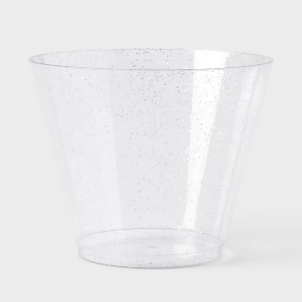 Whether you're celebrating a birthday or ringing in the new year, you'll appreciate the simple convenience and attention-grabbing style of these Stemless Wine Glasses from Spritz™. This wine glass set includes 20 disposable wine glasses, each made from sturdy plastic with a stemless design for practical style. The transparent glasses are infused with silver glitter, lending a touch of fun flair you'll love, and the 20-count set makes sure you have enough glasses for all your guests. Simply pair with complementary plates and appetizers for a festive drinkware option that you and your guests are sure to enjoy.Spritz™: Pops of joy that make the moment™