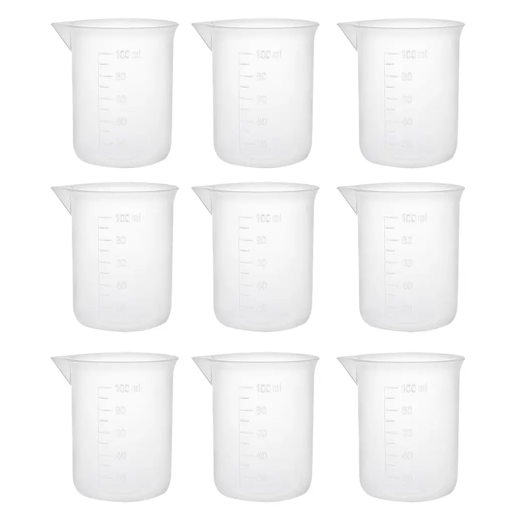 9Pcs Measuring Cup Labs Clear Pp Plastic Graduated Beakers 100ml - Transparent - Transparent - 100ml