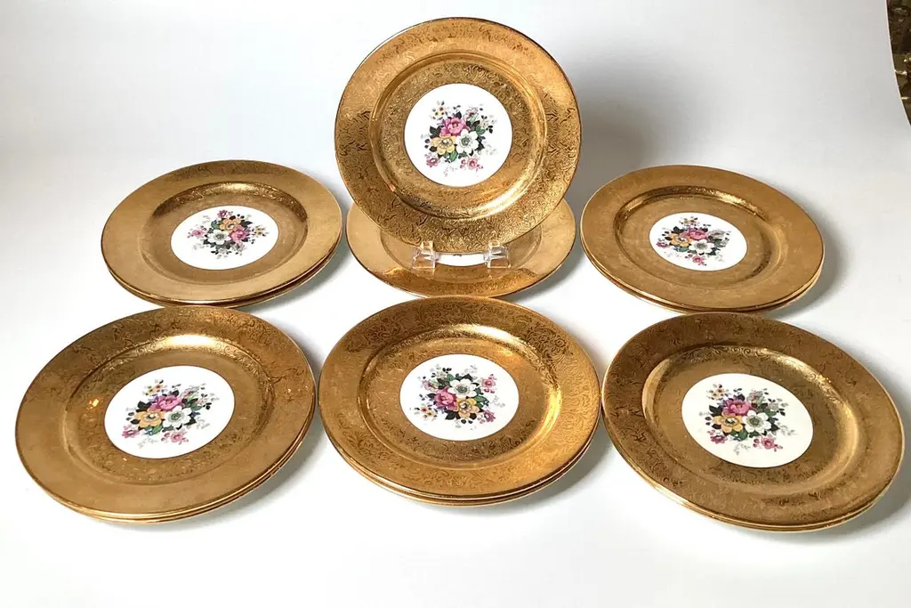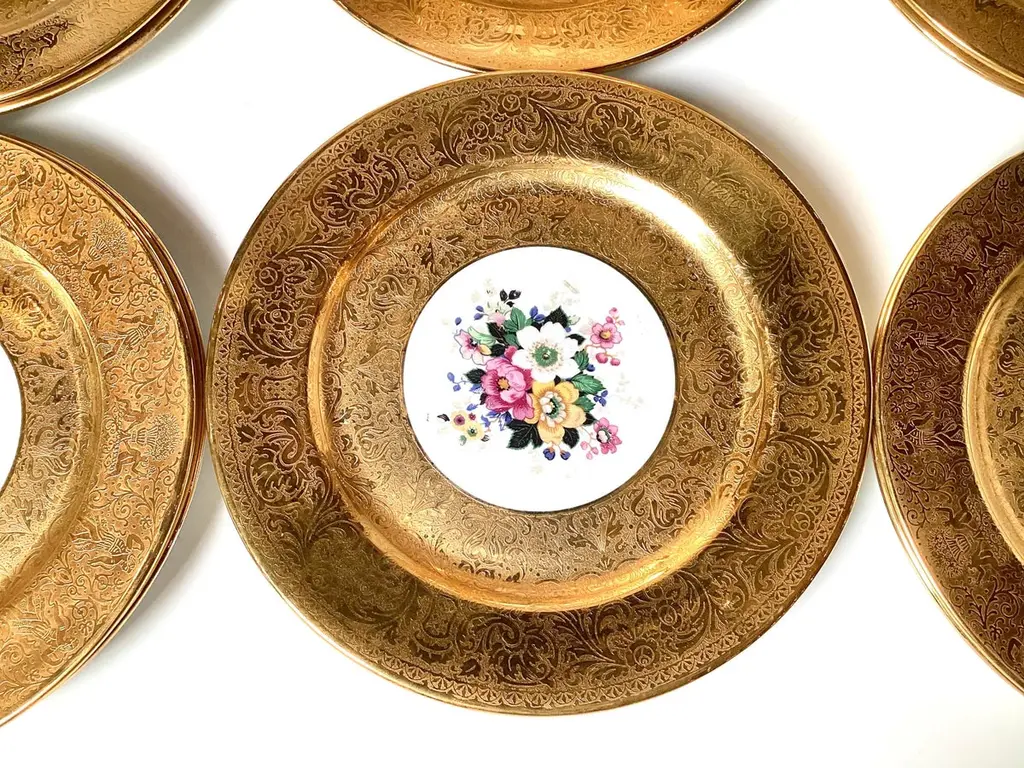 A Set Of 12 Lavish Gold Floral Service Cabinet Plates
