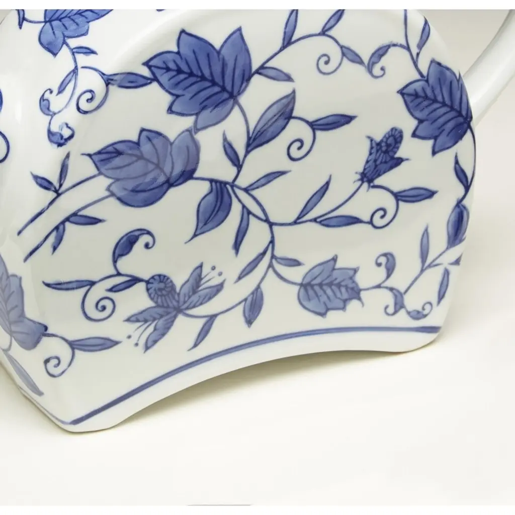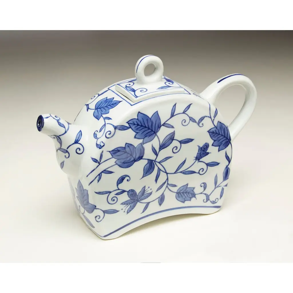 This Blue And White Teapot features Blue and white transferware porcelain with flower and leaf design. Lid is removable. It Measures 7 X 10 X 2.75 Inches, and makes a great gift.