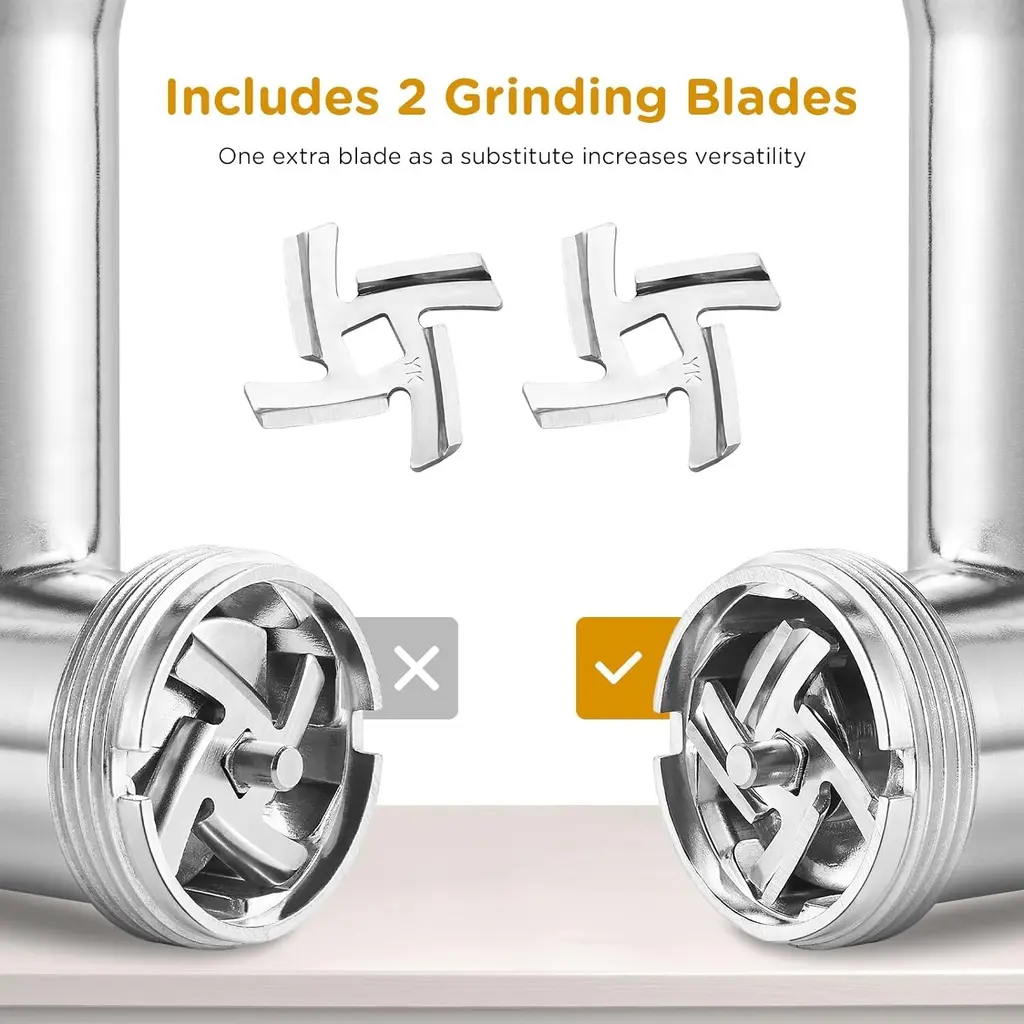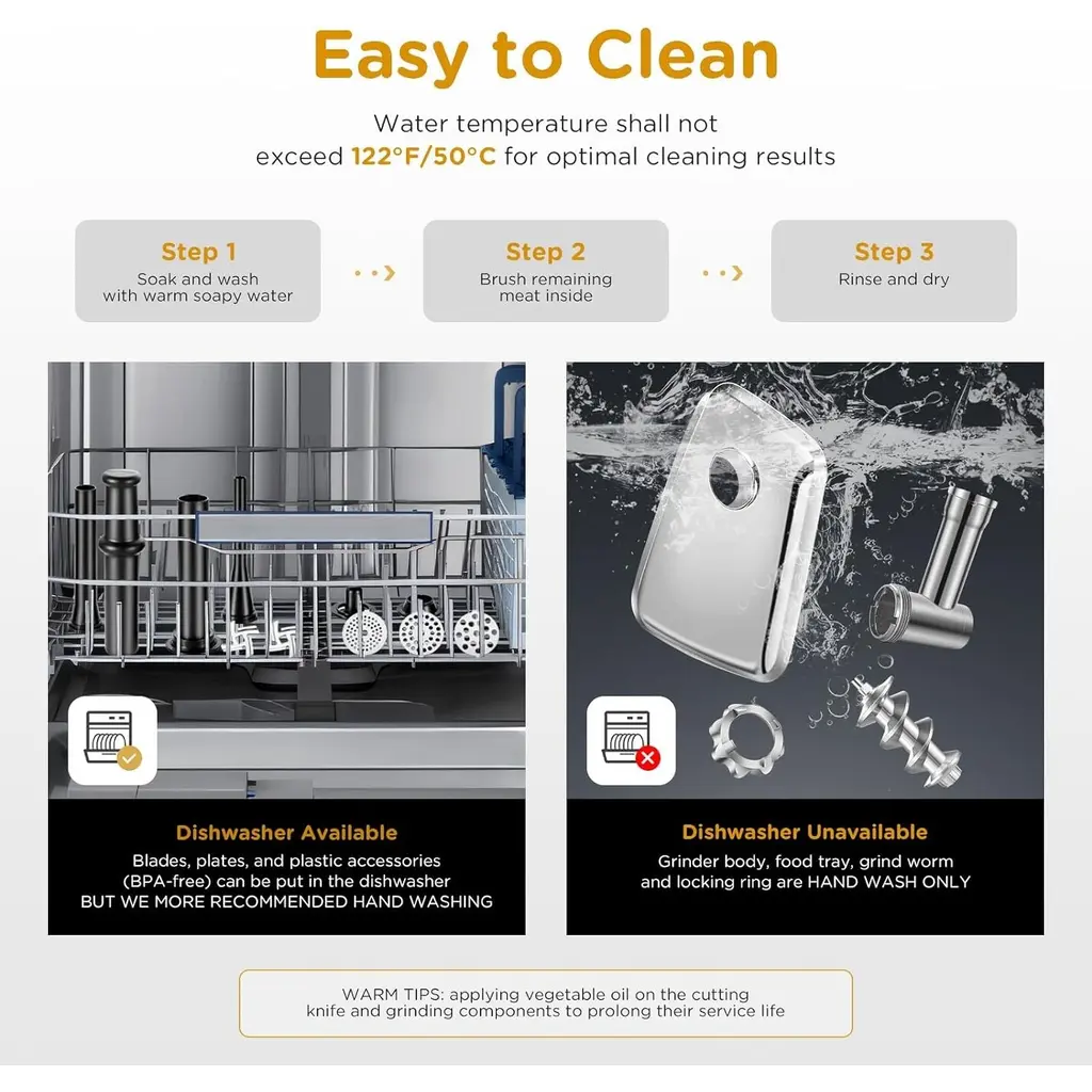 ✔🍔【Unleash the Power Meat Grinder】 Aobosi electric meat grinder is a powerhouse in your kitchen! Its 100% pure copper motor delivers 500W rated power and 3000W max locked power, effortlessly grinding up to 3 pounds of meat per minute. Whether you're a meat enthusiast or a vegetarian, meat grinder electric handles all ingredients with ease, making meal prep faster and more efficient.✔🌭【Versatile Performance】 Experience the versatility of meat grinder heavy duty. Coming with 2 cutting Blades, 3 size grinding plates, 1 fan plate, 3 sausage kits, 1 kibbe attachment, and 1 food pusher, allowing you to achieve the perfect texture for any dish. Take advantage of the sausage stuffing tube and kibbe attachment for even more culinary possibilities - make delicious sausages or stuffed kibbe effortlessly.✔🥘【Convenient Storage】 Keep your kitchen neat and organized with our heavy-duty meat grinder's spacious storage box. It conveniently stores 2 blades, 3 cutting plates, and 1 kibbe kit, eliminating clutter while keeping accessories readily accessible.✔🍝【Easy to Use and Clean】 Using Aobosi meat grinders is a breeze. Simply push your ingredients into the hopper, select your desired grind size, and let Aobosi meat grinder do the rest. Cleaning up is equally effortless as all parts can be easily disassembled. We recommend hand washing and wiping with a cloth to prevent oxidation and discoloration of aluminum alloy parts. Stainless steel blades and grinding plates are dishwasher safe.✔🥩【Safe and Durable Design】 Safety is our top priority. Aobosi meat grinders for home use includes essential safety features such as overheat protection and a circuit breaker, guarding against motor damage from electrical surges. The stainless-steel housing and high-quality internal components ensure durability, making it a reliable workhorse in your kitchen.