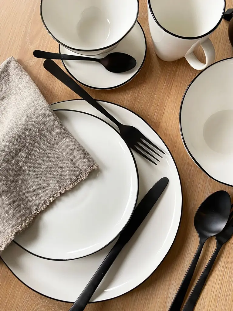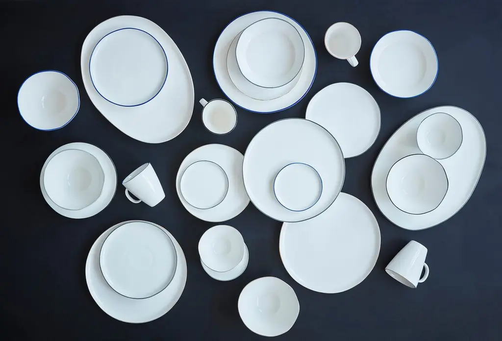 Named a design classic by Elle Décor, this best-selling porcelain dinnerware reflects its European heritage through its understated elegance. A single, hand-painted line outlines the simple, organic shapes. Available with various rim colors. Porcelain. Microwave and Dishwasher Safe (certain rims cannot be microwaved). Sold Individually.