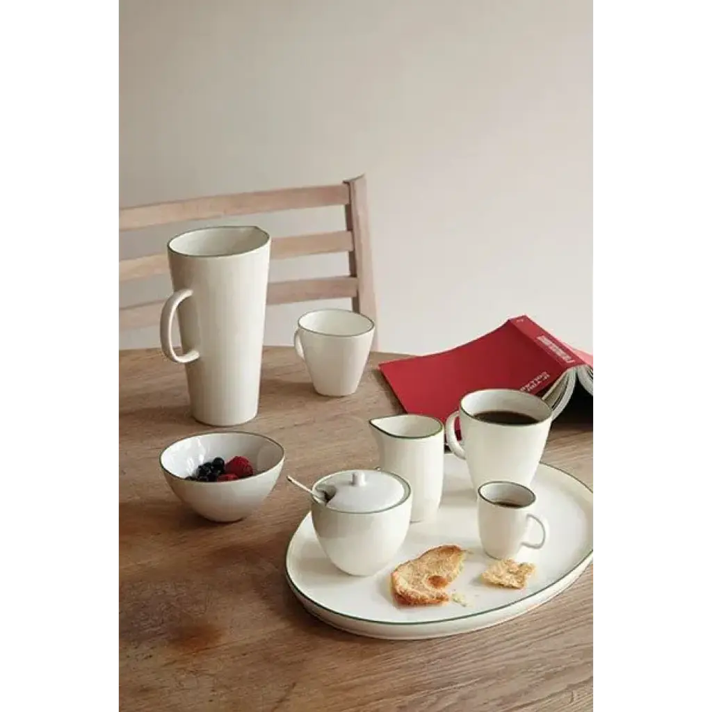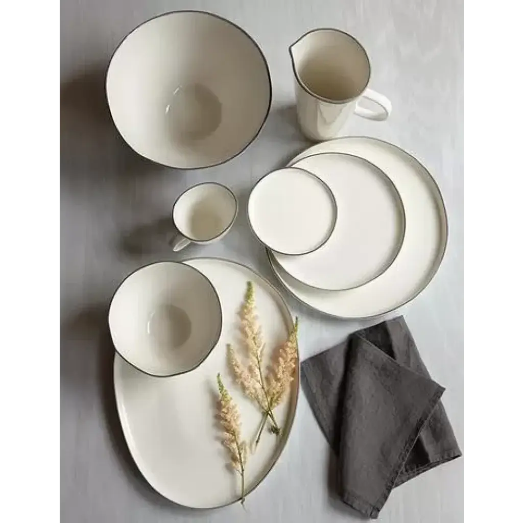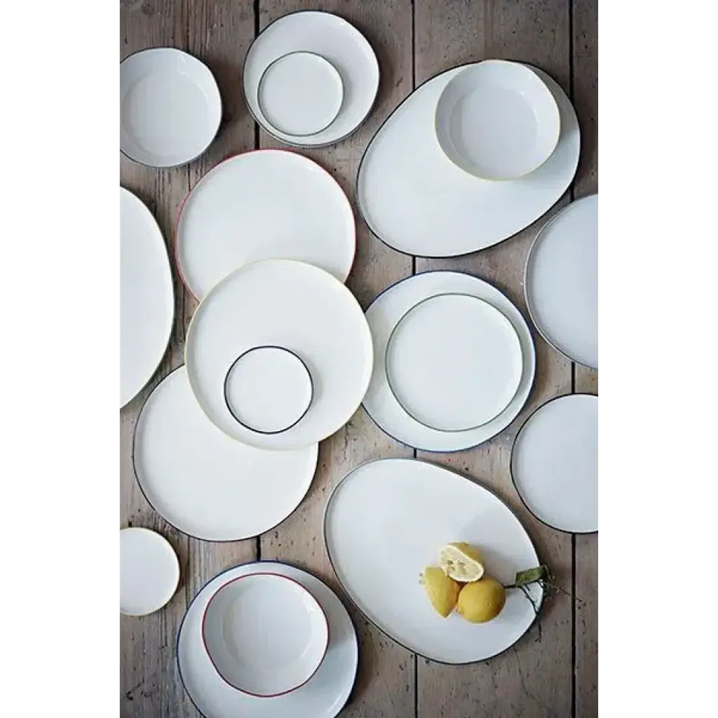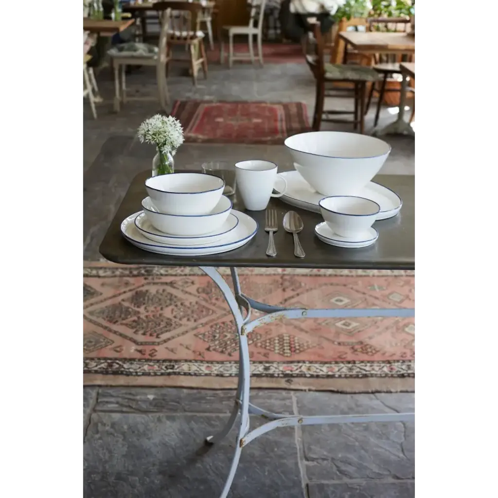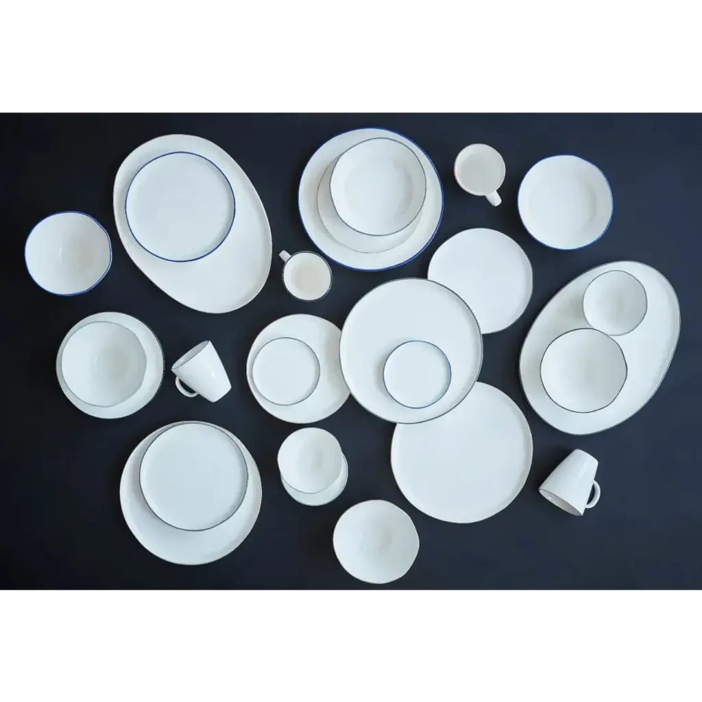 Named after a Parisian arrondissement, our bestselling Abbesses collection reflects its European heritage of charming simplicity. Hand painted rims in blue, black, grey, and gold outline clean and contemporary organic shapes. Perfect for casual dinners as well as a leisurely breakfast of cafe au lait and croissants.