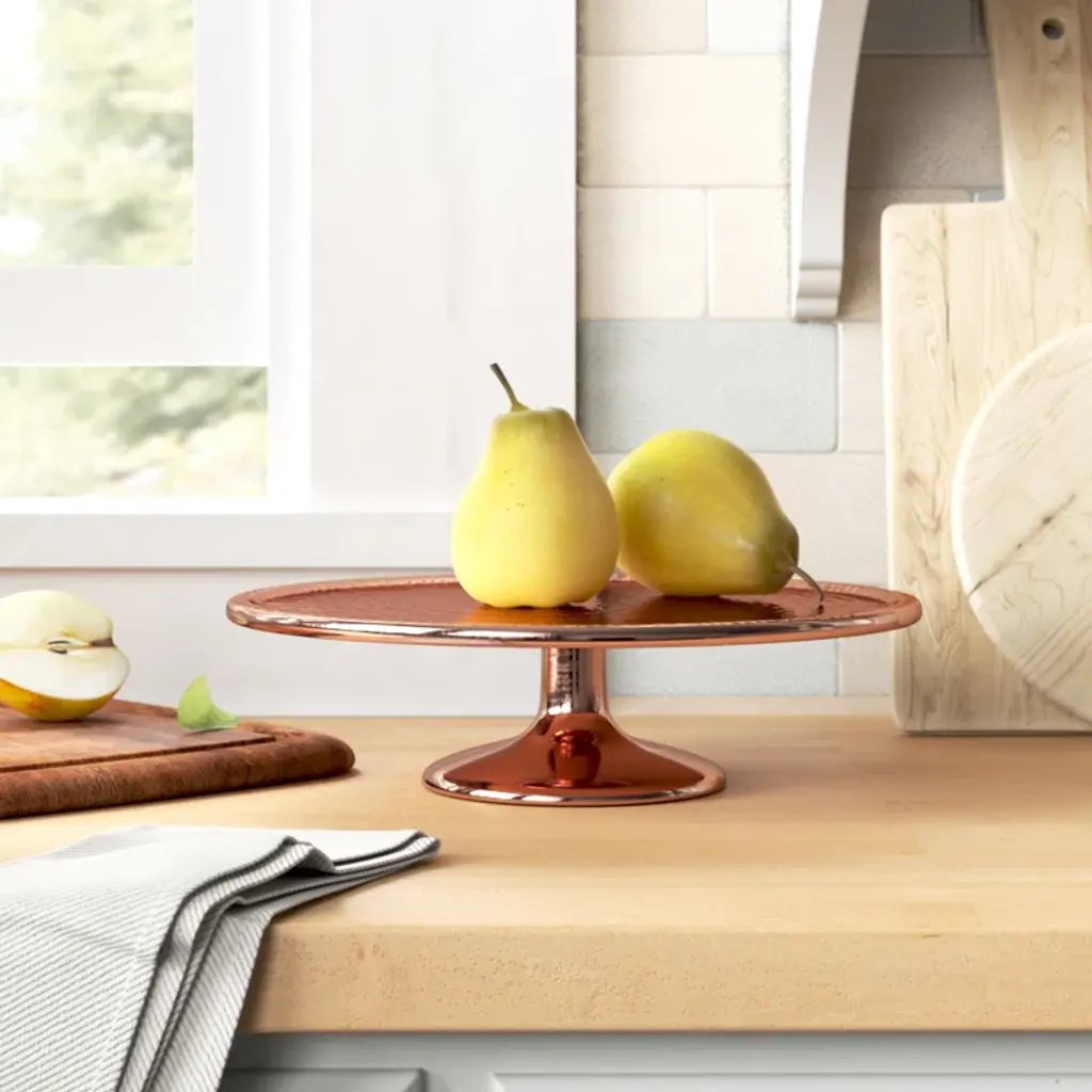 Add a touch of elegance to your dessert display with this handcrafted stainless steel cake stand. Its round shape and gleaming finish make it an ideal centerpiece for showcasing your culinary creations. The stand comes with a matching utensil, ensuring that serving is a breeze. Designed for residential use, it's food-safe, freezer-safe, and PTFE and PFOA-free. Keep in mind, this lovely piece is best cared for with a gentle hand wash. So go ahead, and elevate your next celebration with this delightful cake stand.