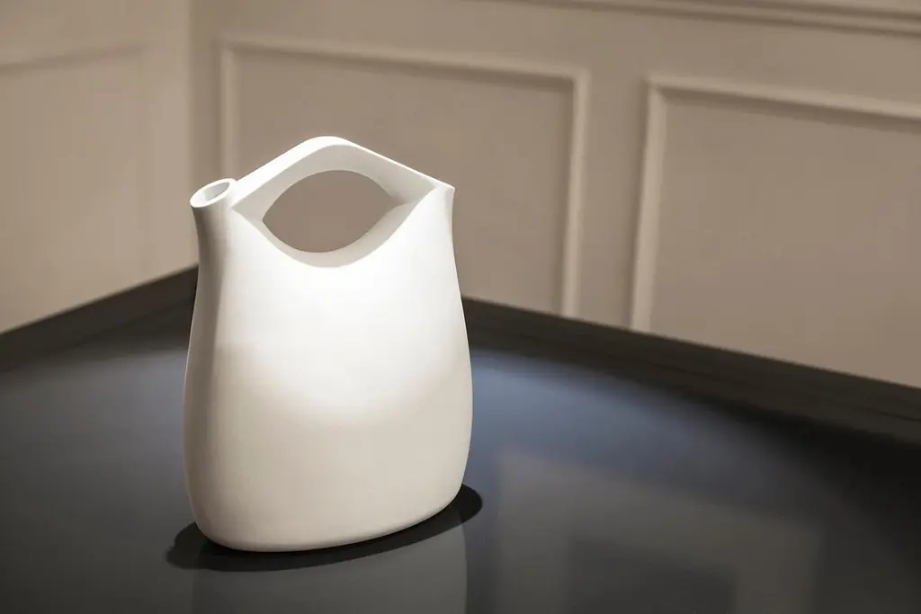 Abrek White Jug by ZPS StudioDimensions: W 24 x D 12.5 x H 31.5 cmMaterials: Matte Glazed Ceramic.A number of 31 bowls of identical shape, made in limited edition by fine Italian artisans in 31 different materials: Diogenèa - A tale of bowls is a reflection on the archetypal forms related to food, and a tribute to the essence of an object the bowl that can be said a model to compare multiple changes of materials and different processes, if applied to an identical mold (from marble to crochet, from marsh grass to charred wood, from gold-leaf to terracotta from Impruneta).Each one of these materials carries a tale of technology, territories, handycraft traditions and precious matter.ABOUTZPSTUDIO is an architecture and design firm that emphasizes multidisciplinarity and innovation in every project. Established in Florence in 2003 by Eva Parigi and Matteo Zetti, the practice is focused on pursuing the perfect balance between tradition and avant-garde. Taking advantage of a year-lasting experience, spanning between different areas (retail, interior and product design) the work of ZPSTUDIO has earned its reputation by delivering the most accurate consultancy to its customers, providing them with an extensive and integrated vision of their needs. Attention to detail in every project is paramount to the company’s success in a broad range of works. The company’s services include interior design, architecture, product design, custom furniture and lighting, project development. Over time ZPSTUDIO works have been awarded in international design competitions, and they are being featured in leading specialized press.