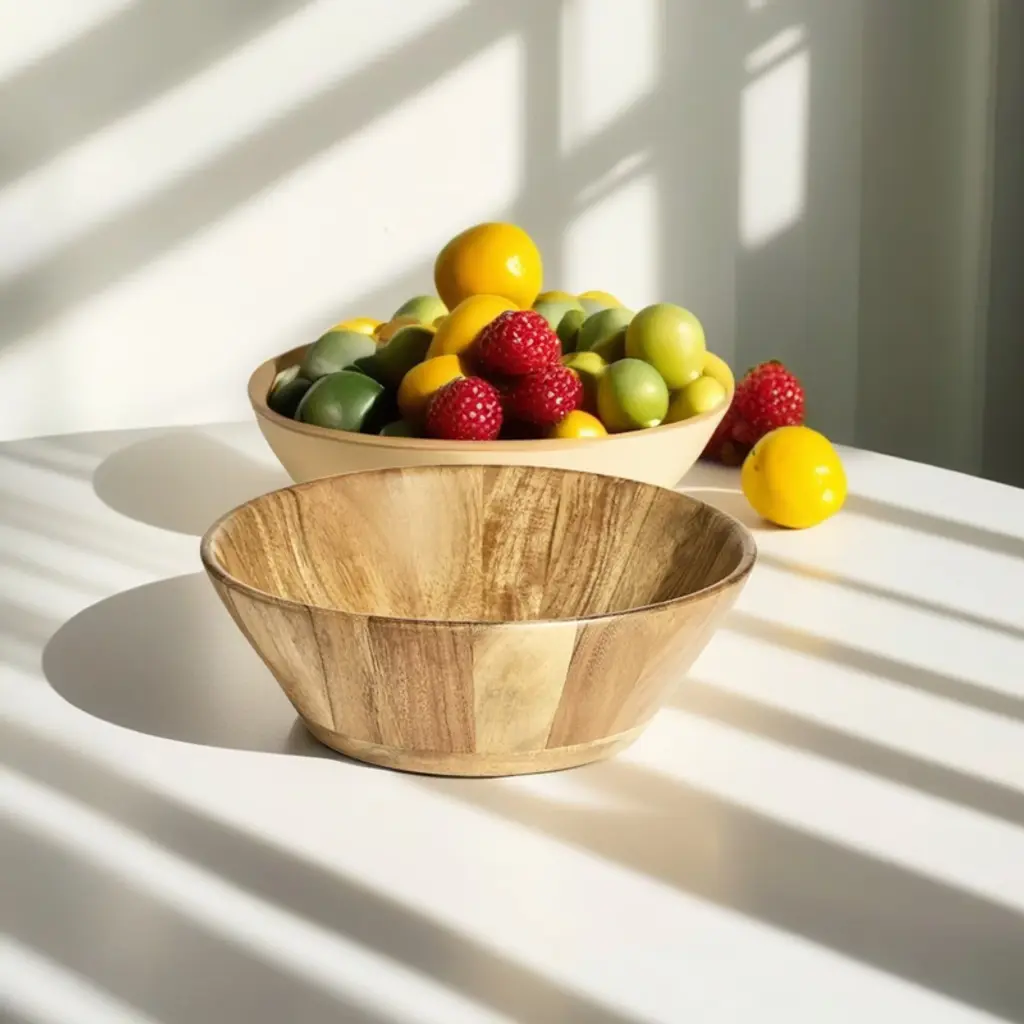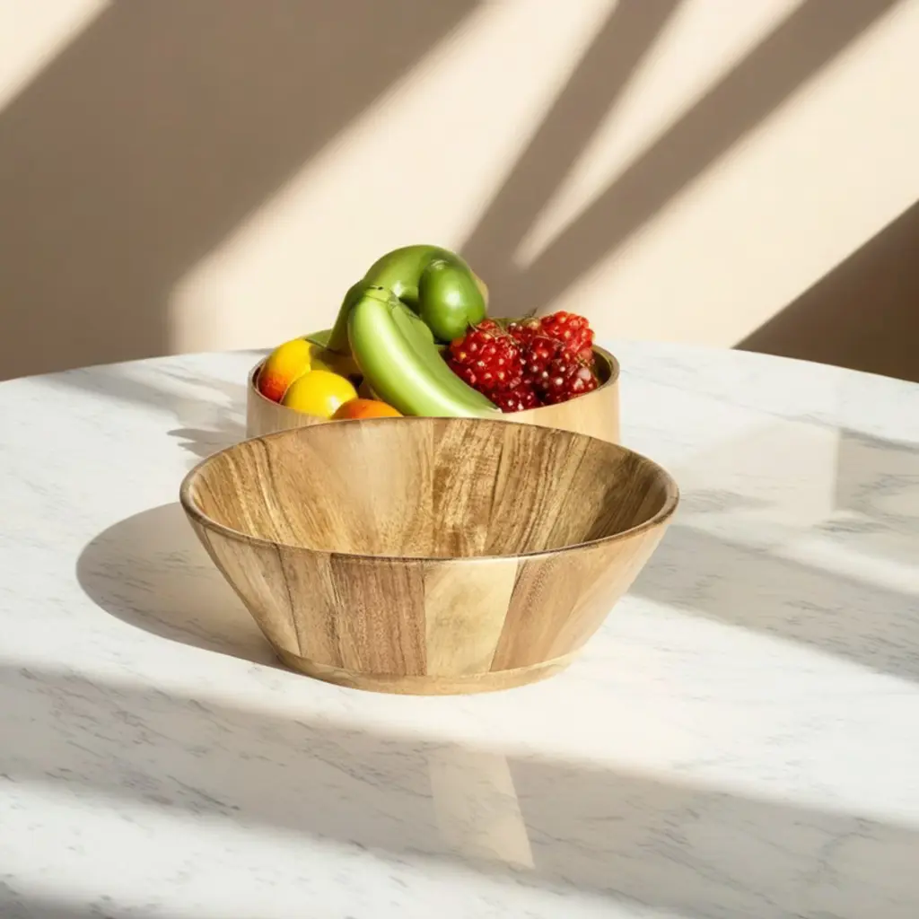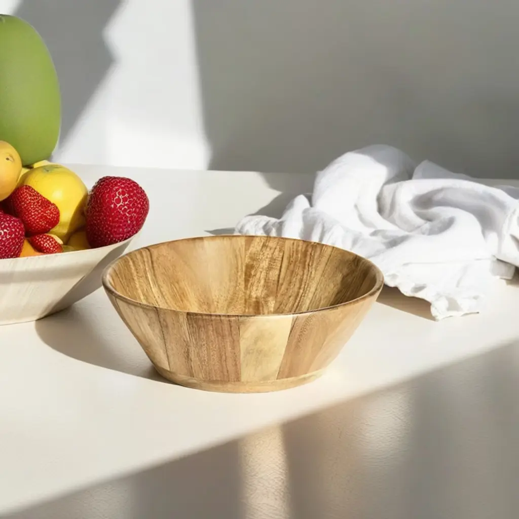 Acacia Wood Large Angled Serving Bowl, Natural Finish