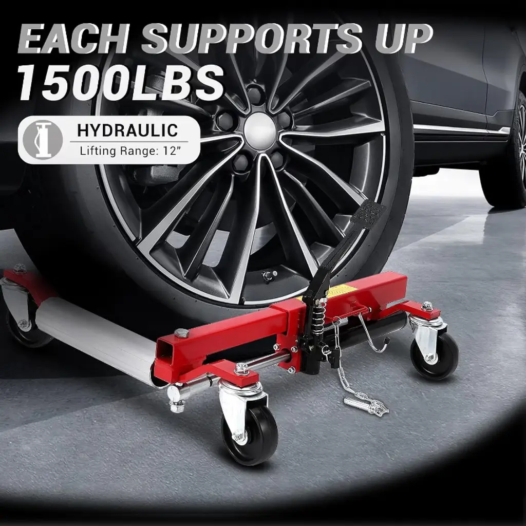 Acekool 2-piece Hydraulic Car Wheel Jack Set 1500 Lb Capacity, Alignment Roller, 12" Plates, 360° Swivel Casters, Auto Tire Repair, Red