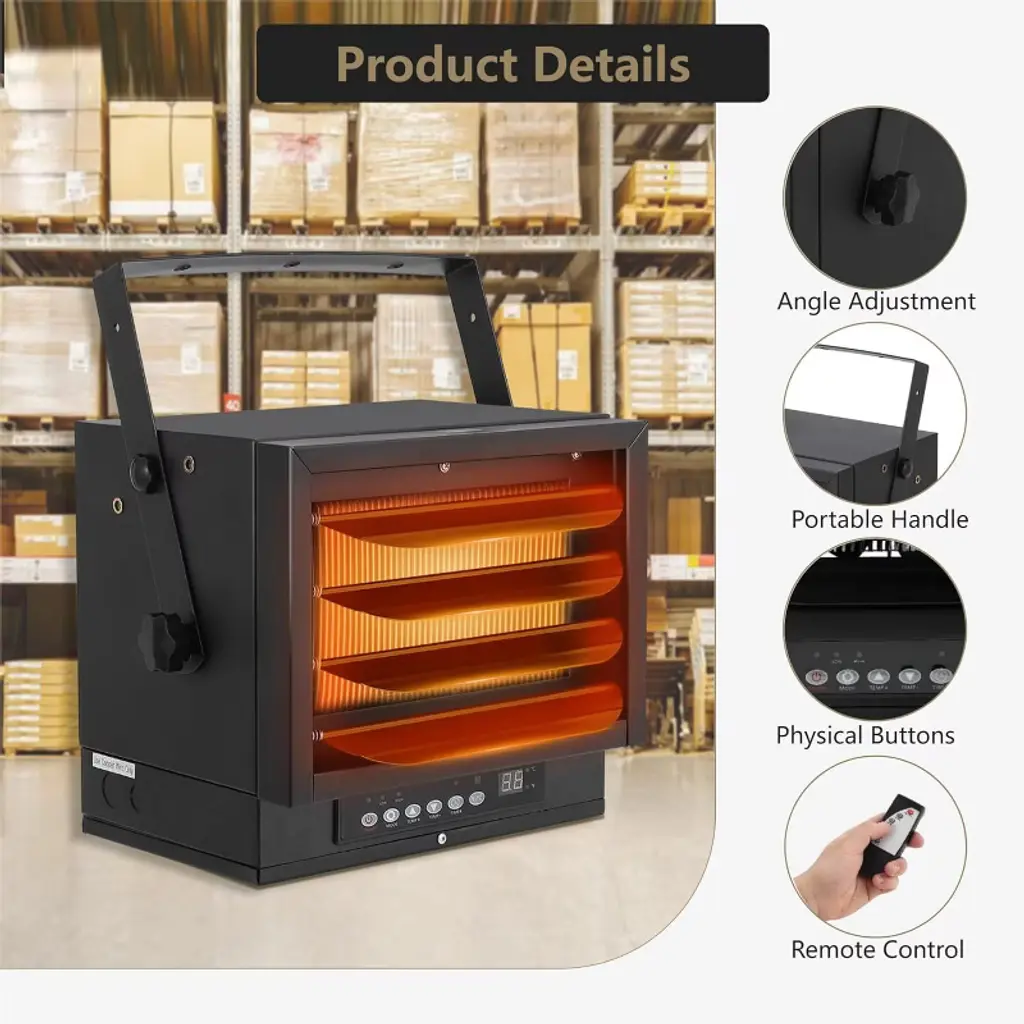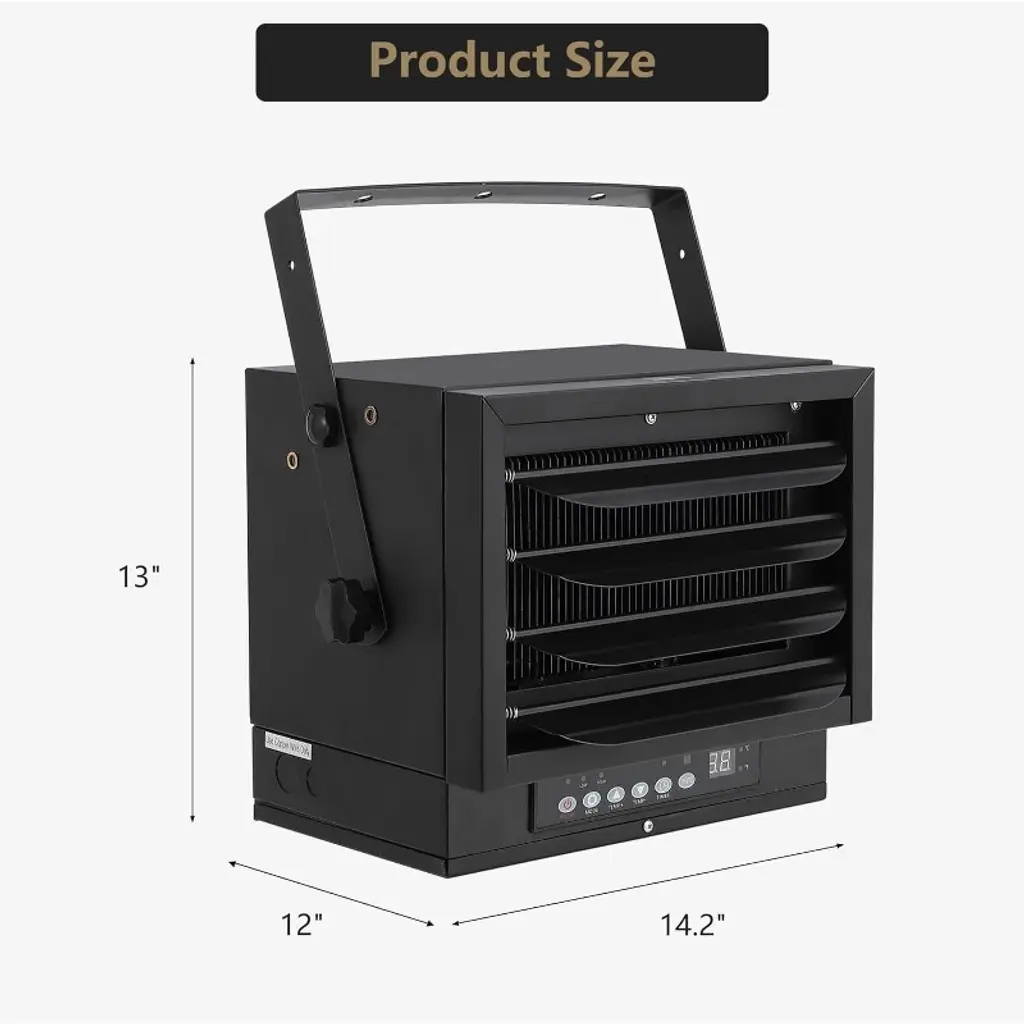 Effective Space Heating This Acekool unit delivers adjustable warmth for large areas. The mounted design saves floor space. Engineered for consistent performance in various settings. Key Features High-capacity heating output Digital control system Sturdy steel construction Flexible mounting options Comprehensive safety systems Heating maintains comfort efficiently. Covers spaces up to 1250 square feet. Fan circulation distributes warmth evenly. Control system simplifies operation. Thermostat adjusts settings precisely. Remote accesses functions conveniently. Digital display shows current status. Construction handles demanding conditions. Steel housing protects internal parts. Mounting hardware included. Specifications Power: 7000W Coverage: 1250 sq ft Voltage: 240V Dimensions: 17.7" W x 12.6" H x 4.3" D Weight: 22.9 lbs Safety Standard: UL certified Placement Environments Workshop project zones Storage area locations Utility room spaces Large basement areas Garden building settings Installation Guidance Professional installation advised Maintain 18-inch clearances Ensure proper electrical supply Verify secure mounting Check ventilation regularly