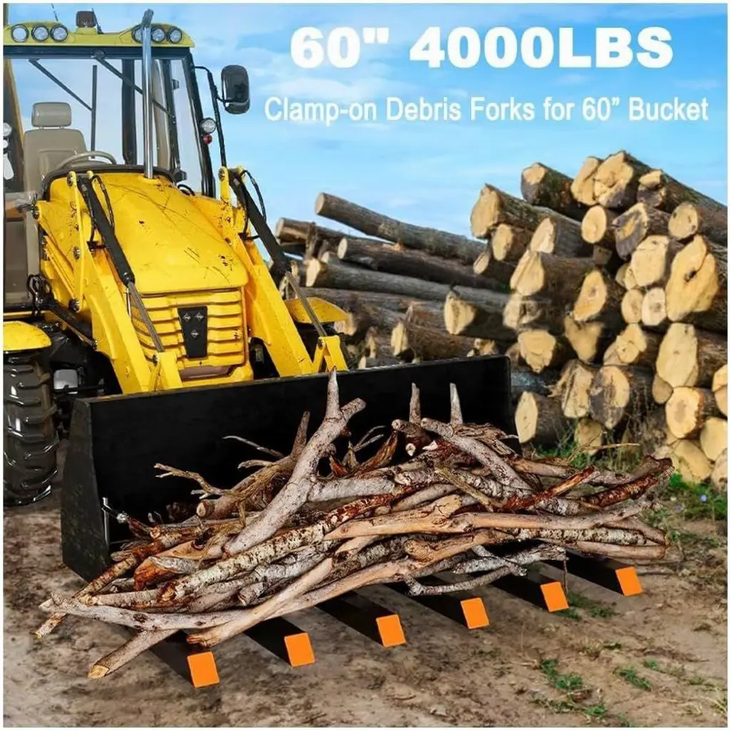 Acekool Clamp-on Debris Forks For 60" Tractor Bucket, 4000 Lbs Capacity, Quick Attach Pallet Fork, 6 Tines For Loader, Skid Steer, Farm