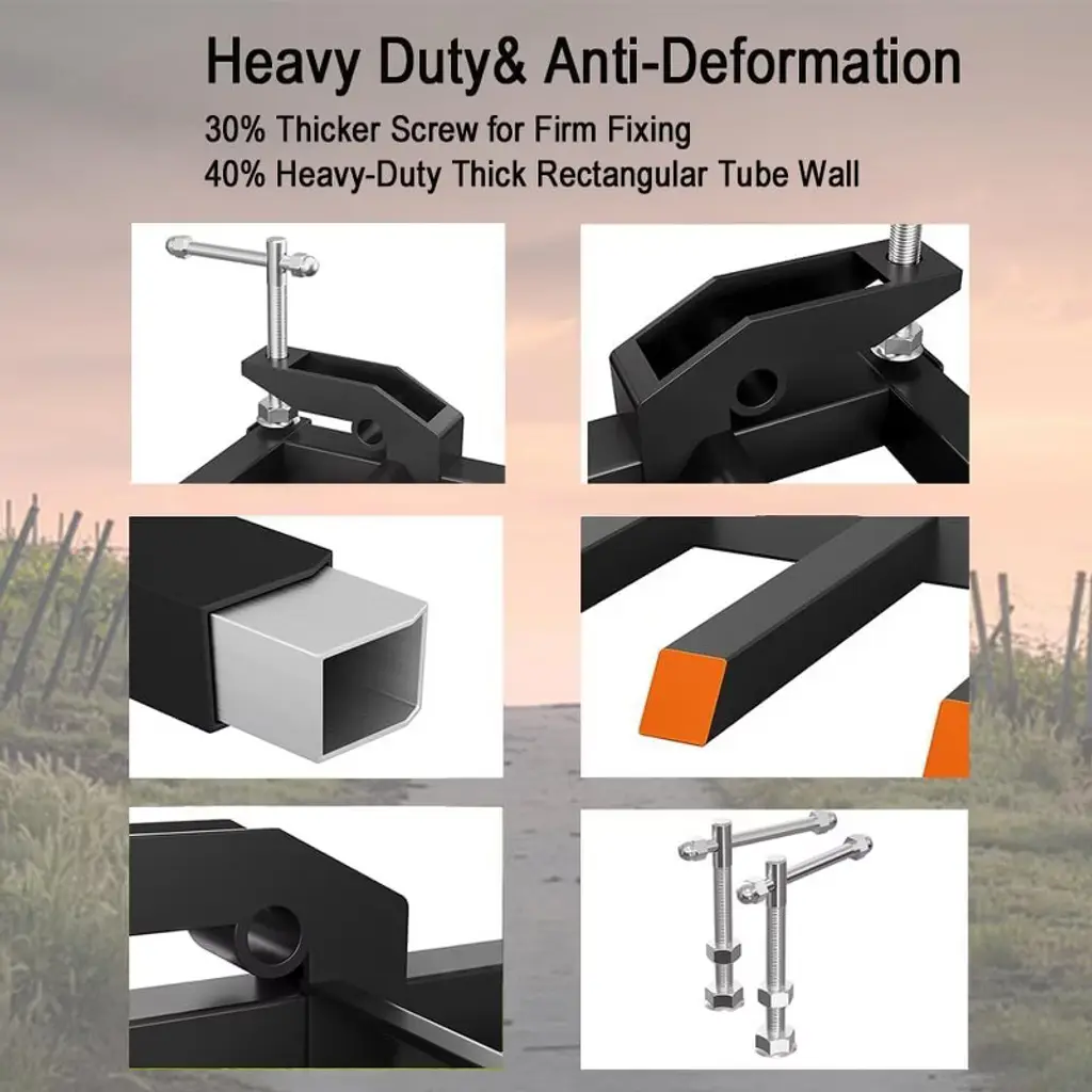 Acekool clamp-on debris forks are designed for work on large properties, farms, orchards, and construction sites. Attach these forks to a standard 60-inch tractor bucket and instantly add versatility to your machine. Supporting up to 4000 lbs, the set features six solid tines for strong lifting and secure control when moving heavy items like brush, logs, or hay bales. Whether you’re clearing debris, organizing a worksite, or handling seasonal maintenance, these forks help speed up every job and reduce heavy lifting. Secure installation is simple—slide the debris forks over the bucket’s edge and clamp them down in seconds. Two built-in chain holes keep the forks locked in place and reduce shifting or wobbling during use, even when loaded. The quick-attach system makes moving between jobs or equipment fast and convenient, giving you more productivity every day. Each fork measures 2 inches wide by 21 inches long, with tines spaced 8-1/2 inches apart for balanced support and easy debris pickup. The black powder-coated finish provides protection against moisture, so you can use your forks year-round with confidence. With Acekool clamp-on debris forks, cleanup and farm maintenance become quick, efficient, and less demanding on your back.