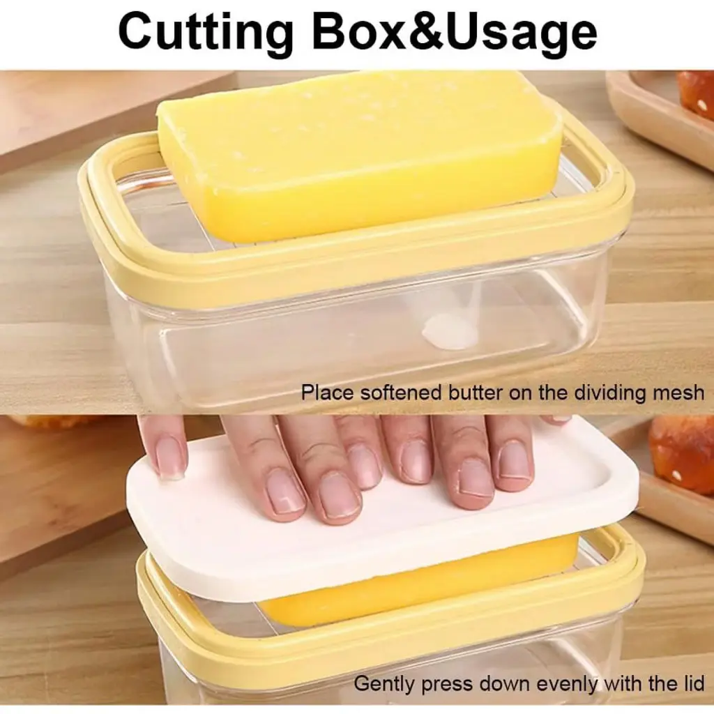 The Acekool Rectangular Butter Dish with Cutter offers a convenient way to store and slice butter for daily meals or baking. The built-in stainless steel cutter lets you create even slices without extra tools, making it simple to serve butter just how you like it. Food-safe construction resists breaking and is also lighter and easier to handle than glass or ceramic dishes. This dish holds up to 200g of butter and fits well in most refrigerators or kitchen counters. The lid is easy to place after removing the cutter, so you can keep your butter protected and accessible for any occasion.