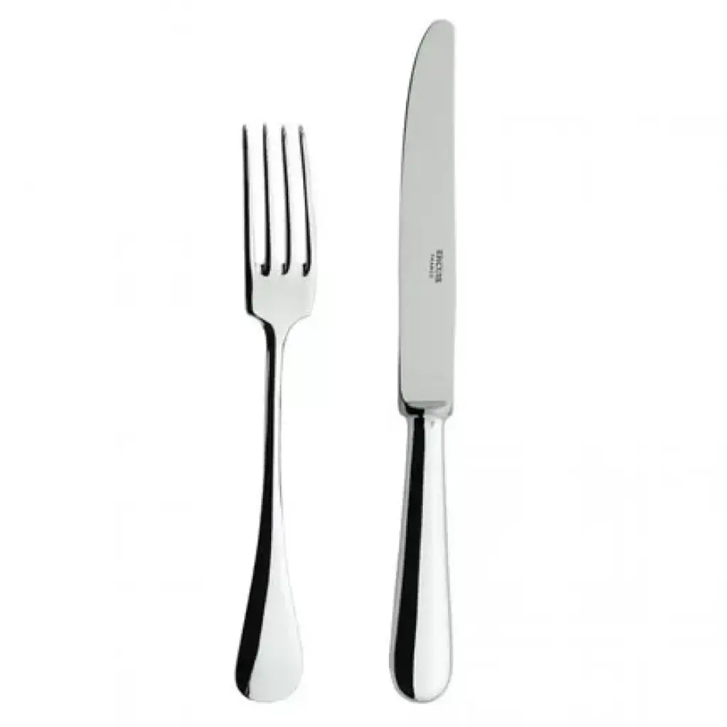 Entirely handcrafted from start to finish, this 12-piece silverware set will evoke the sophistication of antique cutlery sets. The set is composed of six pairs of forks and knives with a hammered handle that evokes the surface of rippling water. The handle elegantly contrasts with the polished knife and fork ends, for a striking visual and textural impact. This set is silver plated using PVD technology that grants resistance to acid solvents, alkalies and household products, and corrosion.
