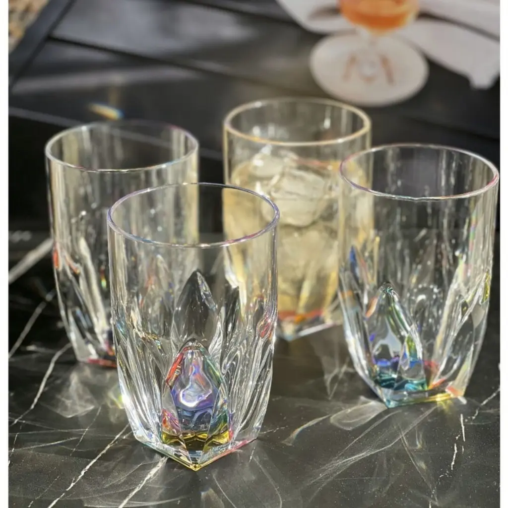 Rainbow Diamond Acrylic Glasses Drinking Set of 4 Hi Ball (17oz), Plastic Drinking Glasses, BPA Free Cocktail Glasses, Drinkware Set, Drinking Water Glasses.Features:Specification: