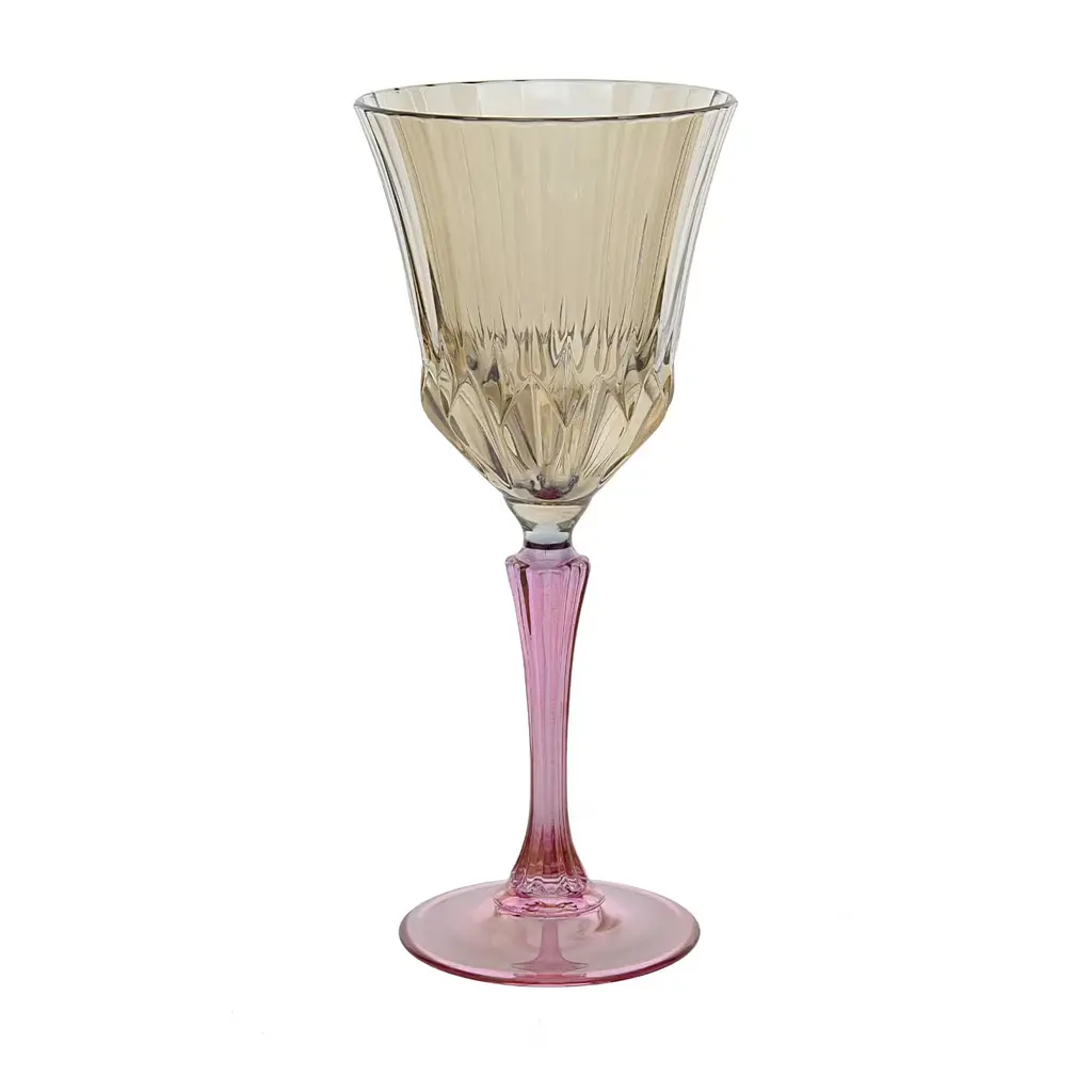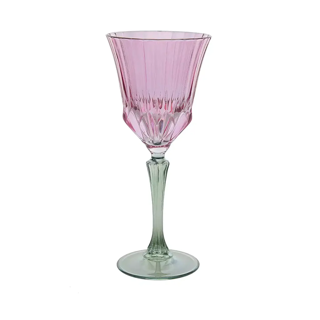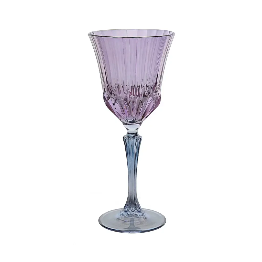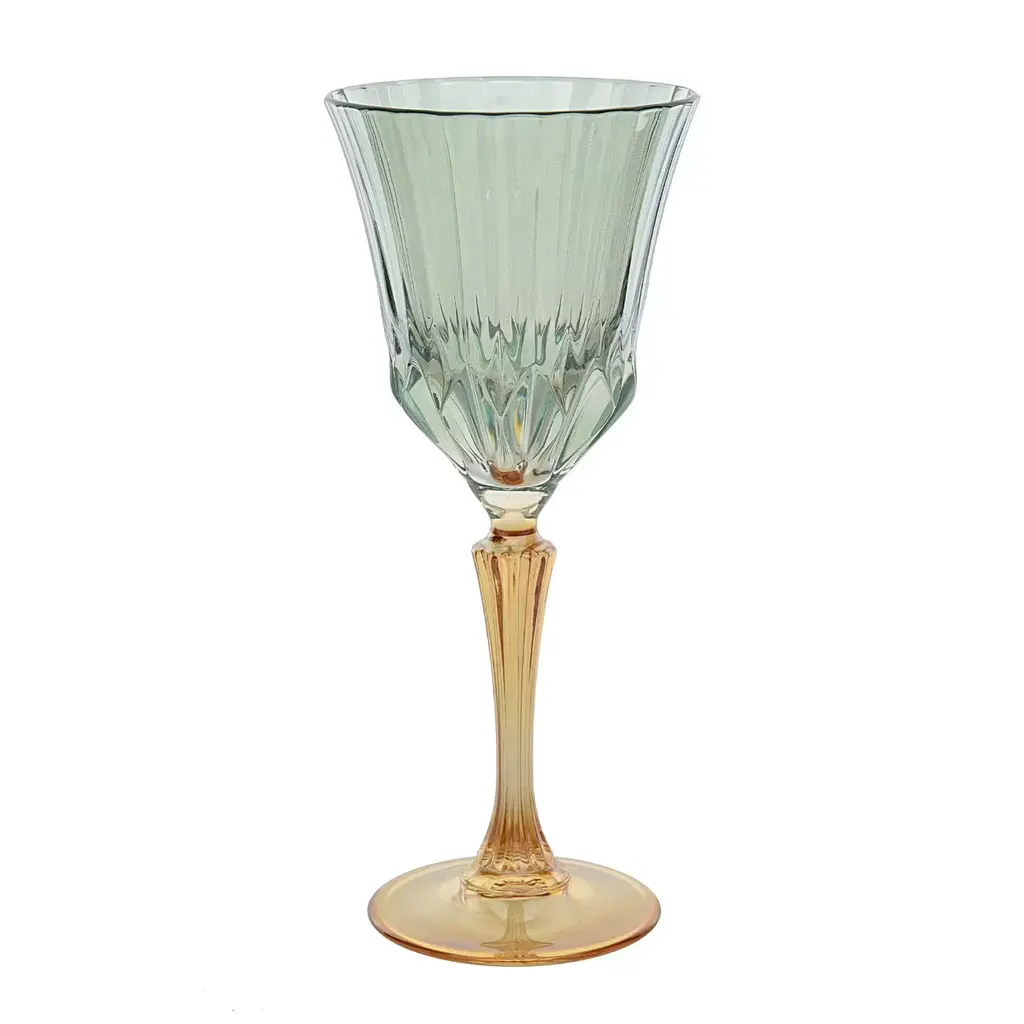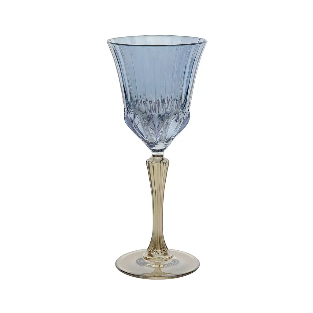 A precious addition to a modern dining table on a celebratory occasion to serve water or soft drinks, this set is composed of six long-stemmed chalices each marked by a two-color palette, and a refined handcrafted grooved motif enhancing the smooth surface of mouth-blown glass. Ideally combined with other glassware sets from the same collection for a bold and cohesive look.