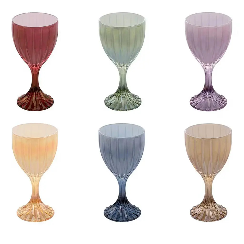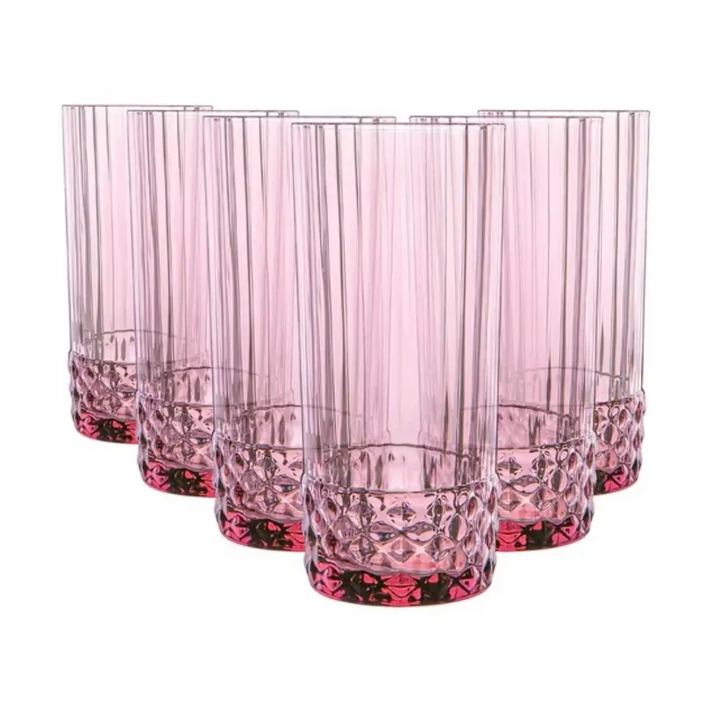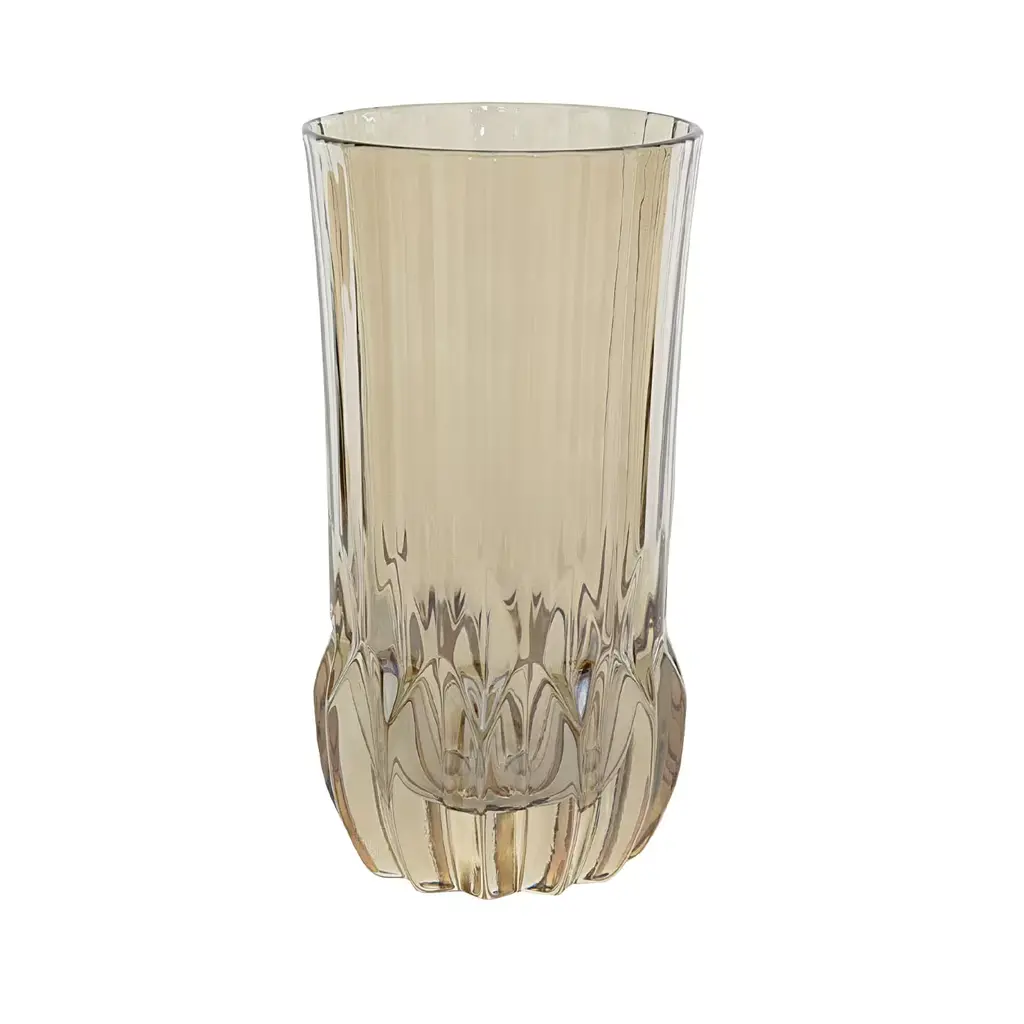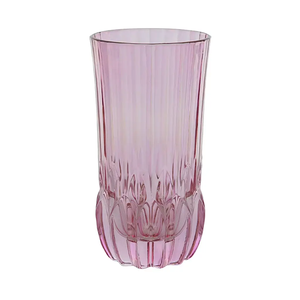 A superlative showcase of craftsmanship, this stylish and elegant set is a versatile addition to a modern or traditional home, used to serve a variety of soft drinks on an everyday basis. Showcasing a classic-shaped grooved silhouette handcrafted of mouth-blown glass, each piece flaunts a different brilliant and translucent color.