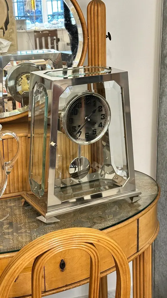 Adolf Loos Jugendstil Mantelpiece-Clock Solid Brass Facetted Glass, Re-Edition