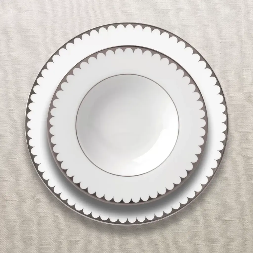 Mirroring the waves of its namesake sea, Aegean Filet dinnerware features a timeless pattern of scales in a delicately scalloped border, hand-applied in platinum. Prior to founding L’Objet in 2004, Israeli-born Elad Yifrach was a successful designer in Beverly Hills. He was creating beautiful interiors, but he was frustrated by the limited options available in home accessories, so he set out to create something better. L’Objet’s collections are diverse, but they are almost always inspired by nature and architecture. Many of his exquisite serving pieces rest in a base of hand-crafted gold foliage, other pieces feature intricate design and beadwork, and some of the most striking objects actually look like miniature buildings. And despite the lux feel, much of the line is practical with just a touch of whimsy.