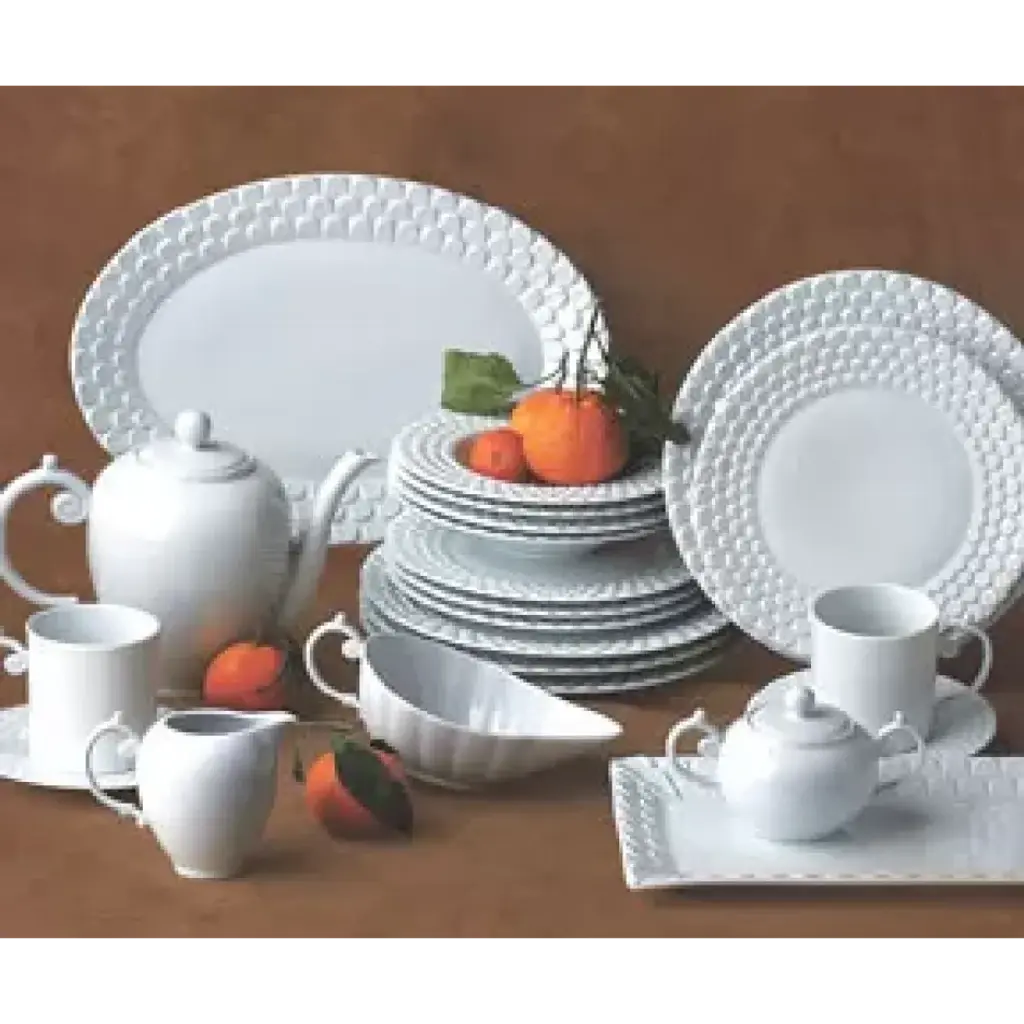 Inspired by the art of the ancient Greeks, L'Objet's Aegean Sculpted dinnerware is edged with three layers of beautiful scales. Each plate is made by hand from Fine porcelain. Five-piece settings include dinner plate, dessert plate, bread and butter plate, tea cup, and saucer. Prior to founding L’Objet in 2004, Israeli-born Elad Yifrach was a successful designer in Beverly Hills. He was creating beautiful interiors, but he was frustrated by the limited options available in home accessories, so he set out to create something better. L’Objet’s collections are diverse, but they are almost always inspired by nature and architecture. Many of his exquisite serving pieces rest in a base of hand-crafted gold foliage, other pieces feature intricate design and beadwork, and some of the most striking objects actually look like miniature buildings. And despite the lux feel, much of the line is practical with just a touch of whimsy.