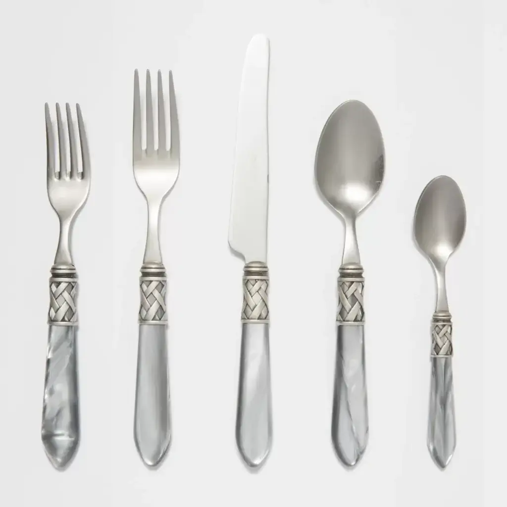 The Aladdin Antique Serving Fork features elegant pearlized handles with the strength of high-grade acrylic and 18/10 stainless steel. This piece is also available in our brilliant finish. Since 1983, Vietri has specialized exclusively in Italian handcrafted ceramics, stainless and pewter flatware, mouth blown glassware, lamps, urns and planters. Families of artisans with 3 or 4 generations of history create these special pieces using centuries-old techniques. The subtle color from a paintbrush and the curving stroke of the artist's hand are never repeated in quite the same way, making each piece truly unique.