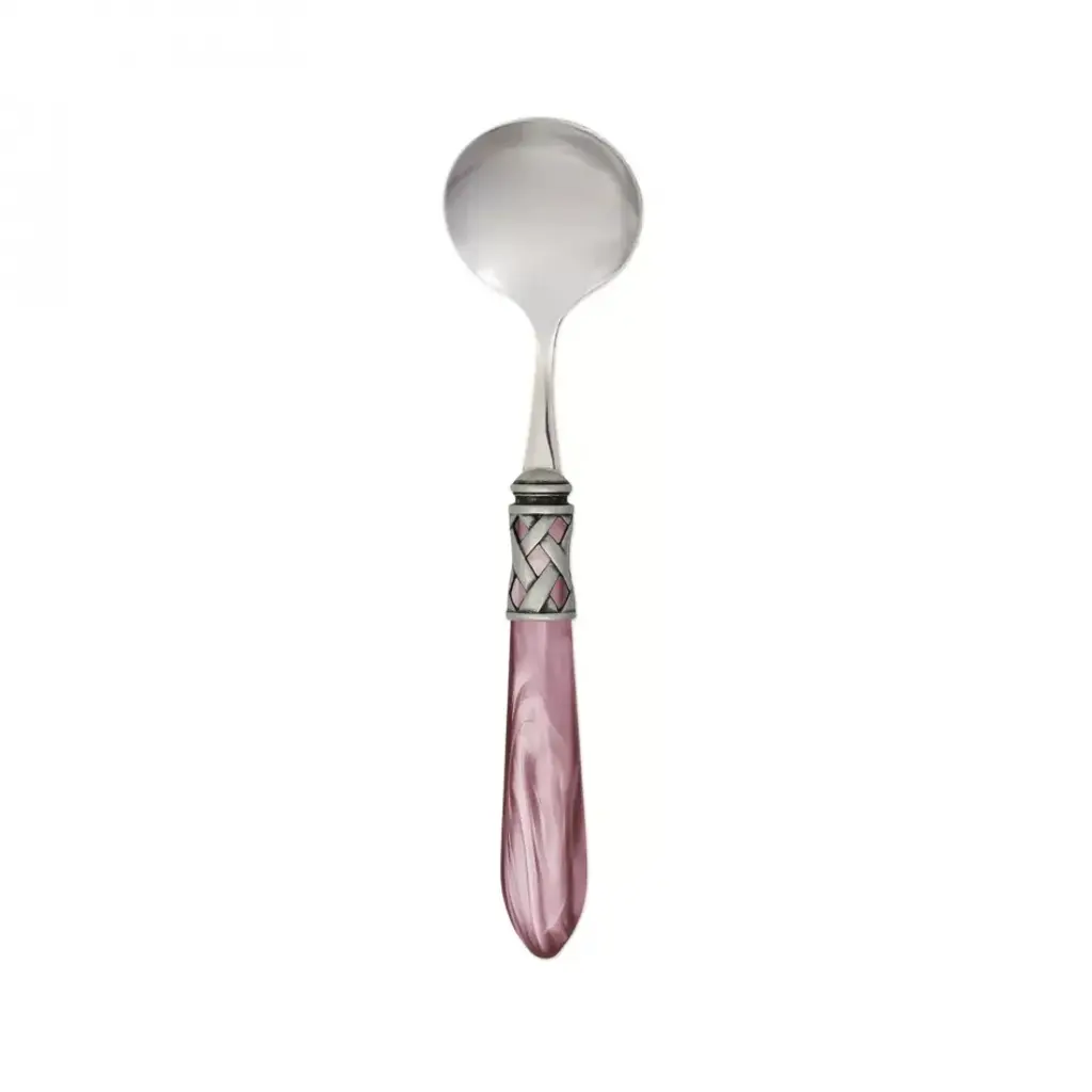 The Aladdin Antique Serving Spoon features elegant pearlized handles with the strength of high-grade acrylic and 18/10 stainless steel. This piece is also available in our brilliant finish. Since 1983, Vietri has specialized exclusively in Italian handcrafted ceramics, stainless and pewter flatware, mouth blown glassware, lamps, urns and planters. Families of artisans with 3 or 4 generations of history create these special pieces using centuries-old techniques. The subtle color from a paintbrush and the curving stroke of the artist's hand are never repeated in quite the same way, making each piece truly unique.