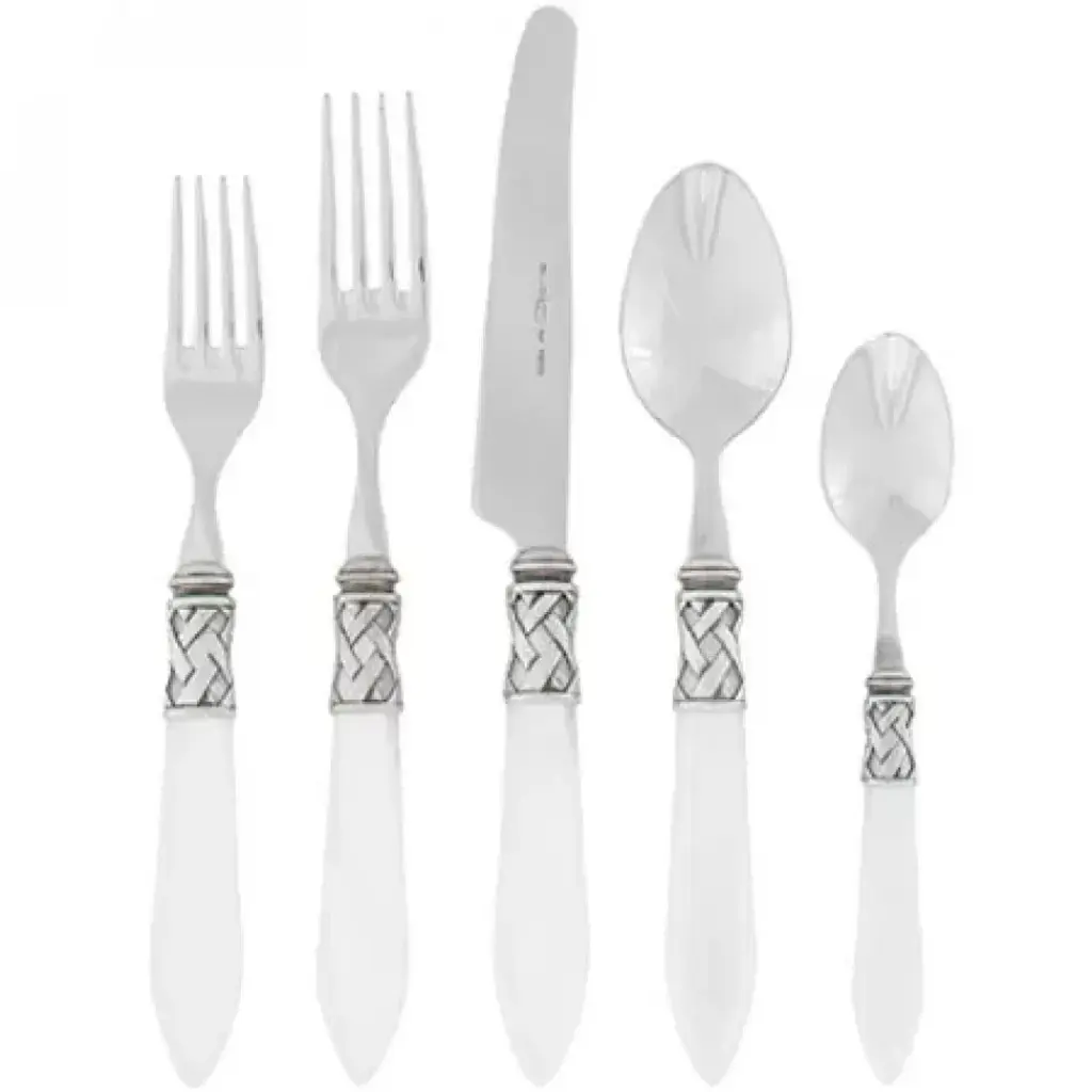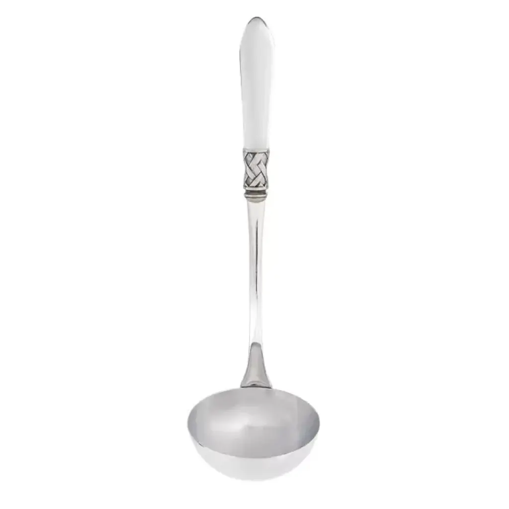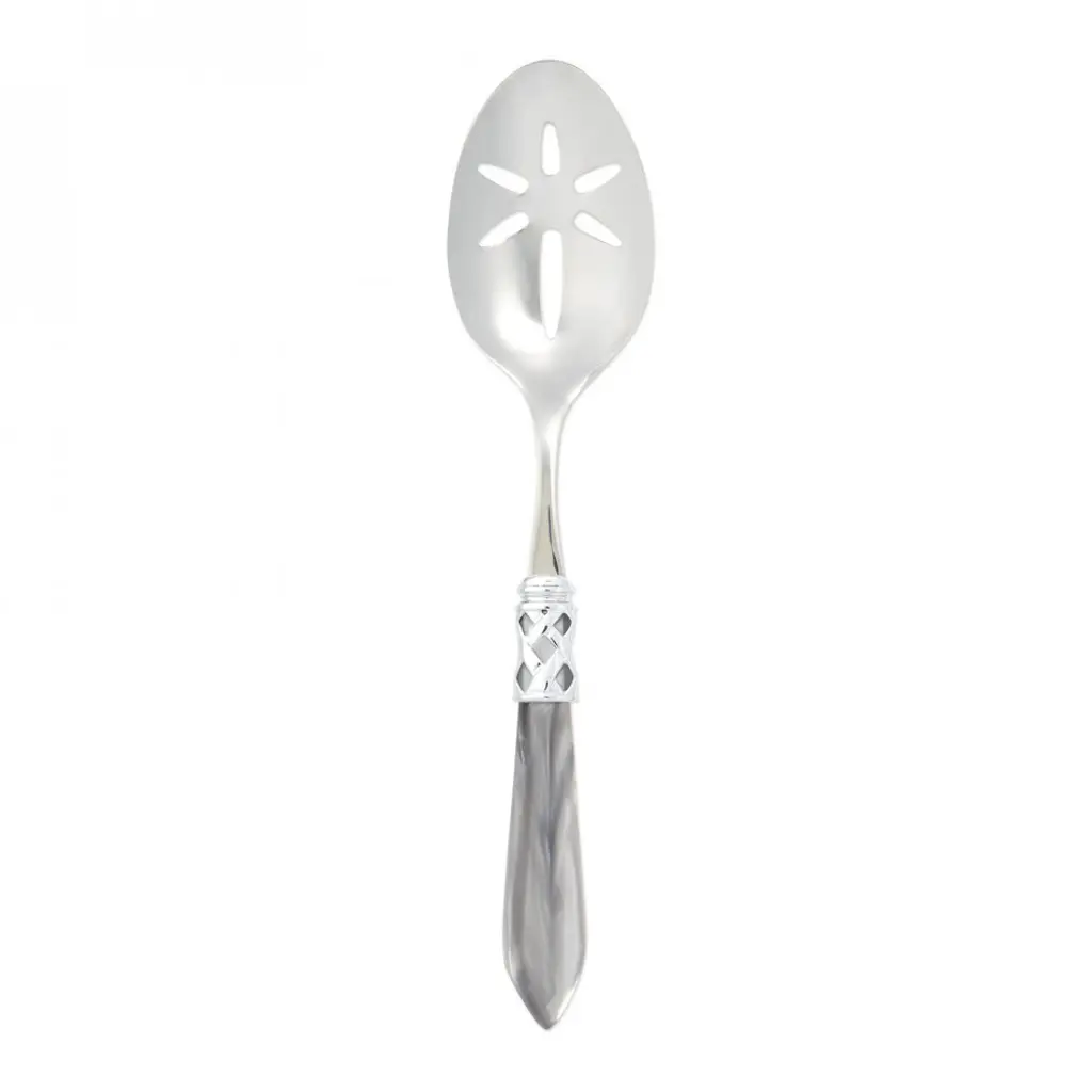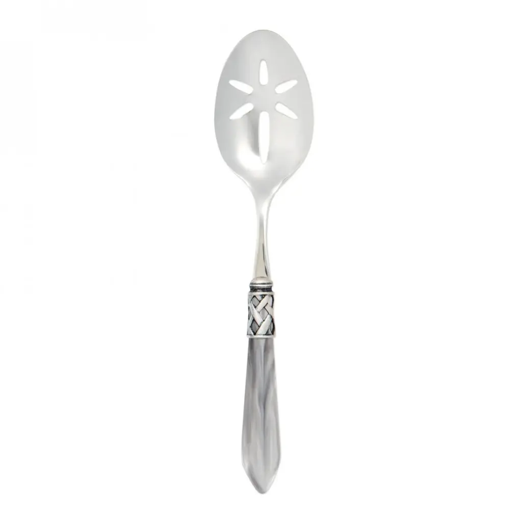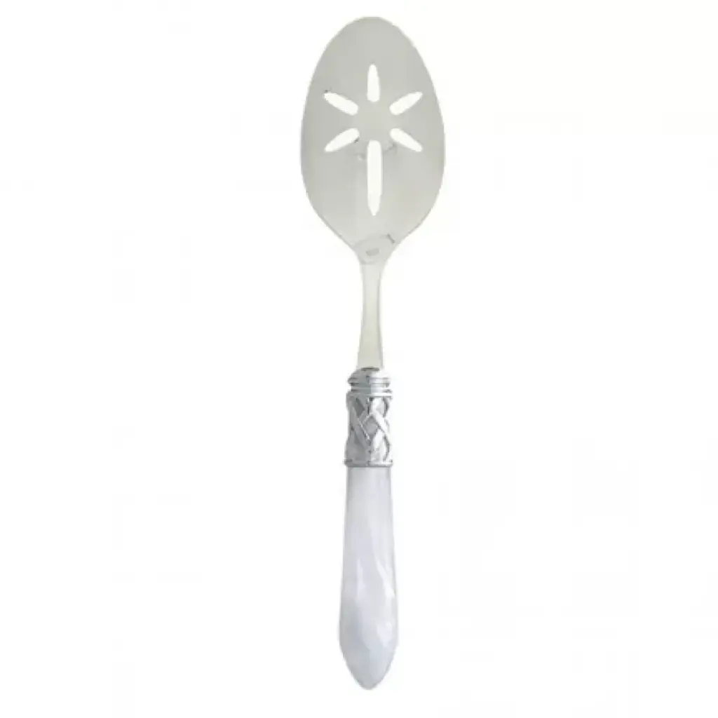 The Aladdin Antique Serving Spoon features elegant pearlized handles with the strength of high-grade acrylic and 18/10 stainless steel. This piece is also available in our brilliant finish. Since 1983, Vietri has specialized exclusively in Italian handcrafted ceramics, stainless and pewter flatware, mouth blown glassware, lamps, urns and planters. Families of artisans with 3 or 4 generations of history create these special pieces using centuries-old techniques. The subtle color from a paintbrush and the curving stroke of the artist's hand are never repeated in quite the same way, making each piece truly unique.