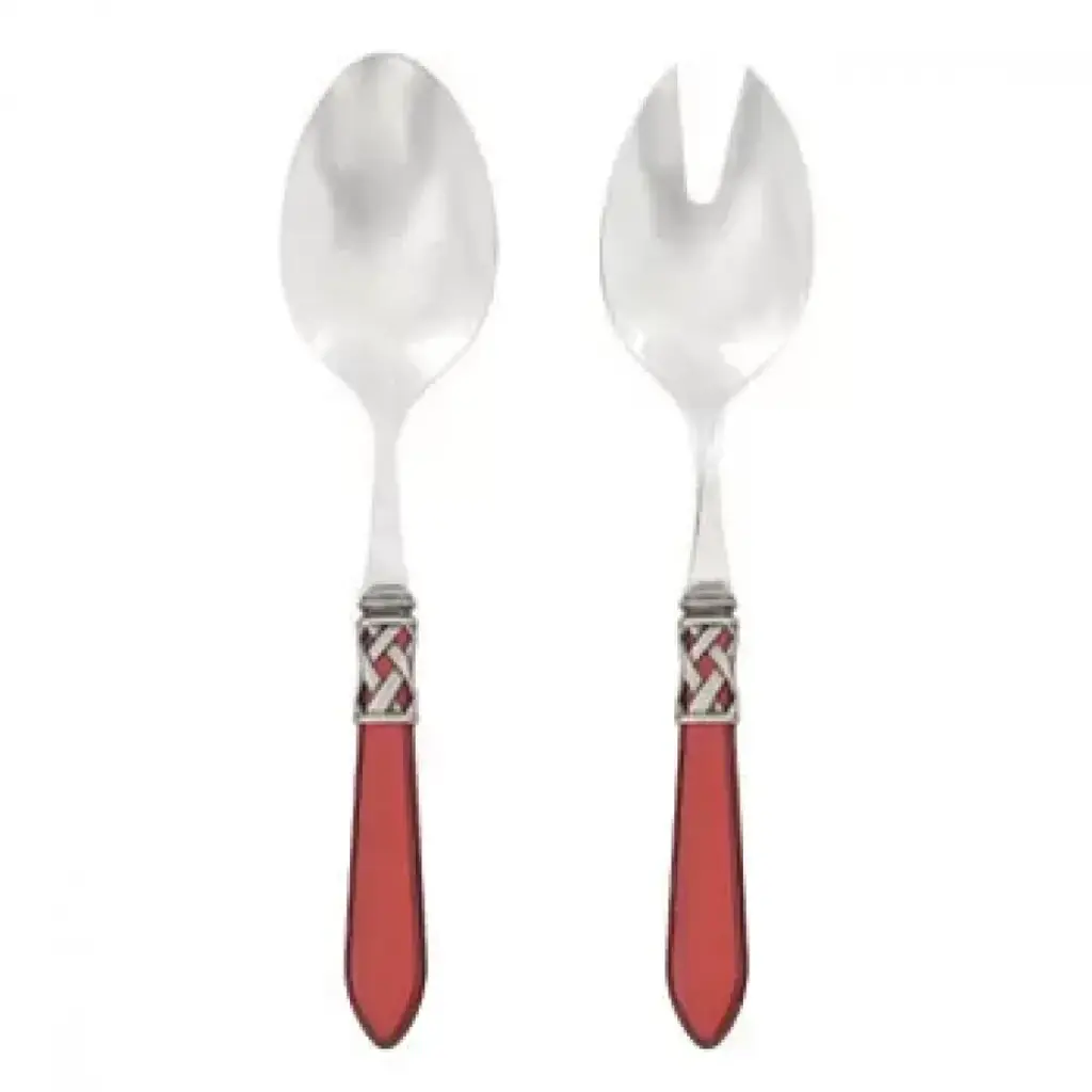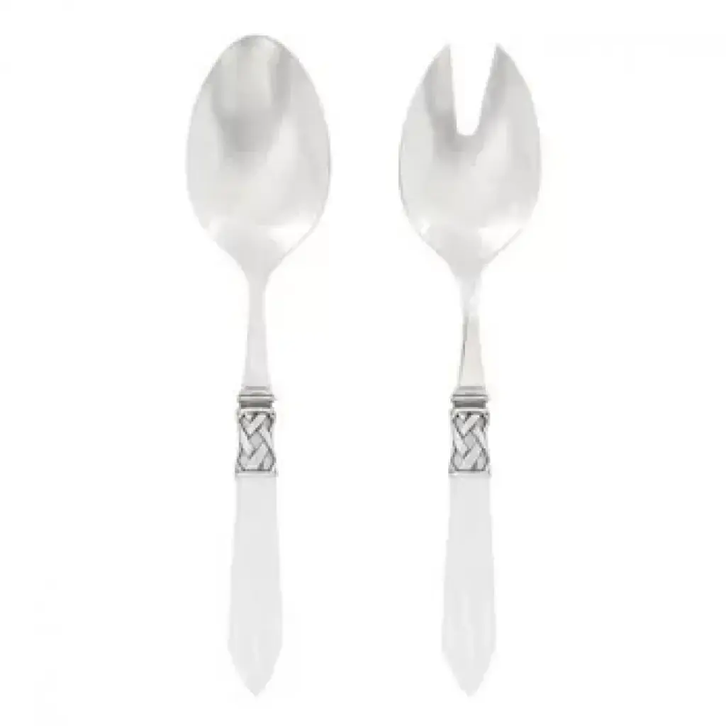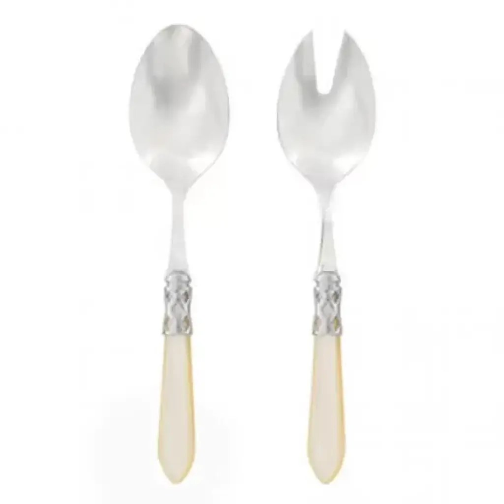 The Aladdin Brilliant Salad Server Set features elegant pearlized handles with the strength of high-grade acrylic and 18/10 stainless steel. This piece is also available in our antique finish. Since 1983, Vietri has specialized exclusively in Italian handcrafted ceramics, stainless and pewter flatware, mouth blown glassware, lamps, urns and planters. Families of artisans with 3 or 4 generations of history create these special pieces using centuries-old techniques. The subtle color from a paintbrush and the curving stroke of the artist's hand are never repeated in quite the same way, making each piece truly unique.