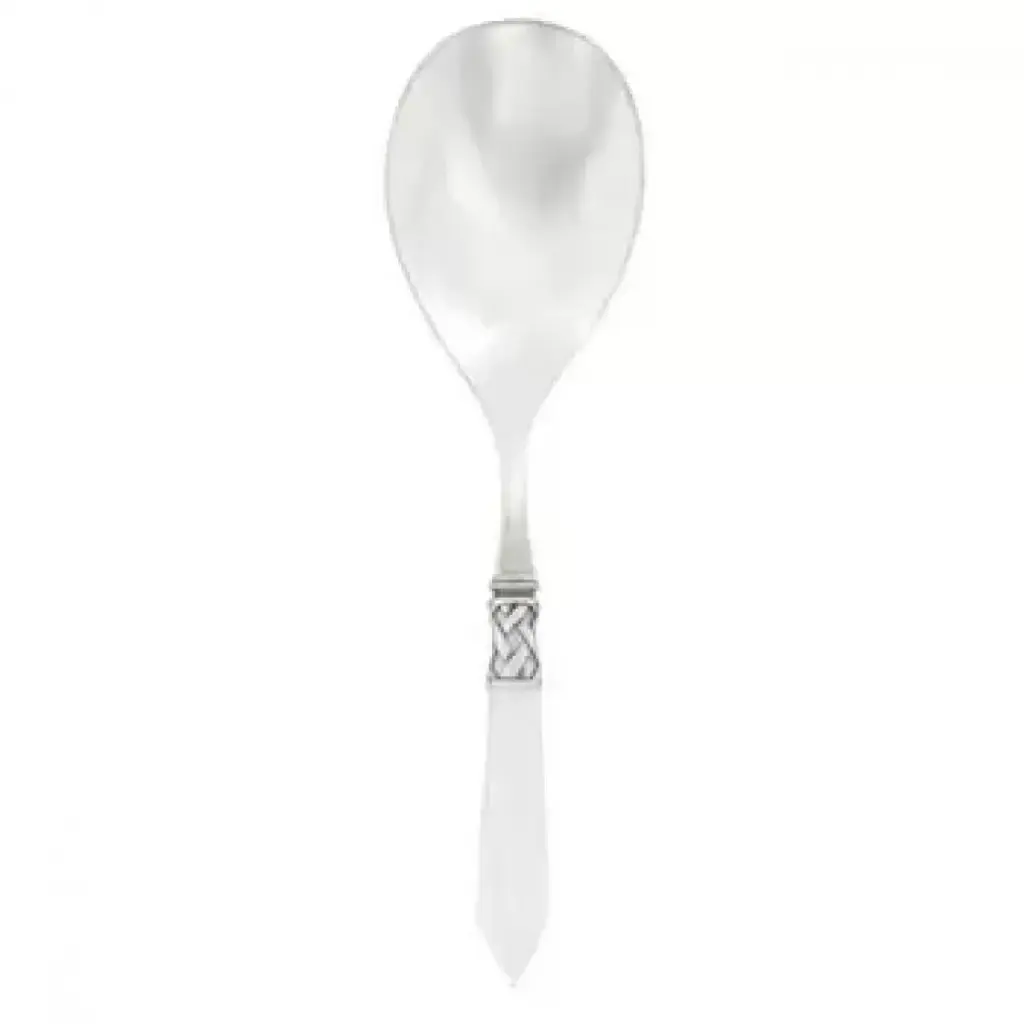 The Aladdin Brilliant Serving Spoon features elegant pearlized handles with the strength of high-grade acrylic and 18/10 stainless steel. This piece is also available in our antique finish. Since 1983, Vietri has specialized exclusively in Italian handcrafted ceramics, stainless and pewter flatware, mouth blown glassware, lamps, urns and planters. Families of artisans with 3 or 4 generations of history create these special pieces using centuries-old techniques. The subtle color from a paintbrush and the curving stroke of the artist's hand are never repeated in quite the same way, making each piece truly unique.
