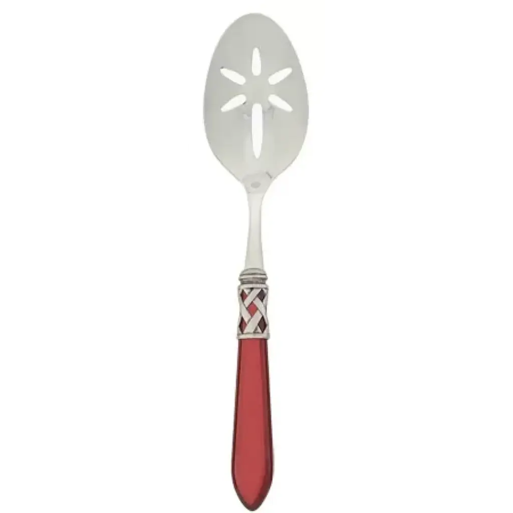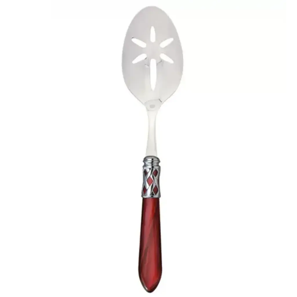 The Aladdin Brilliant Slotted Serving Spoon features elegant pearlized handles with the strength of high-grade acrylic and 18/10 stainless steel. This piece is also available in our antique finish. Since 1983, Vietri has specialized exclusively in Italian handcrafted ceramics, stainless and pewter flatware, mouth blown glassware, lamps, urns and planters. Families of artisans with 3 or 4 generations of history create these special pieces using centuries-old techniques. The subtle color from a paintbrush and the curving stroke of the artist's hand are never repeated in quite the same way, making each piece truly unique.