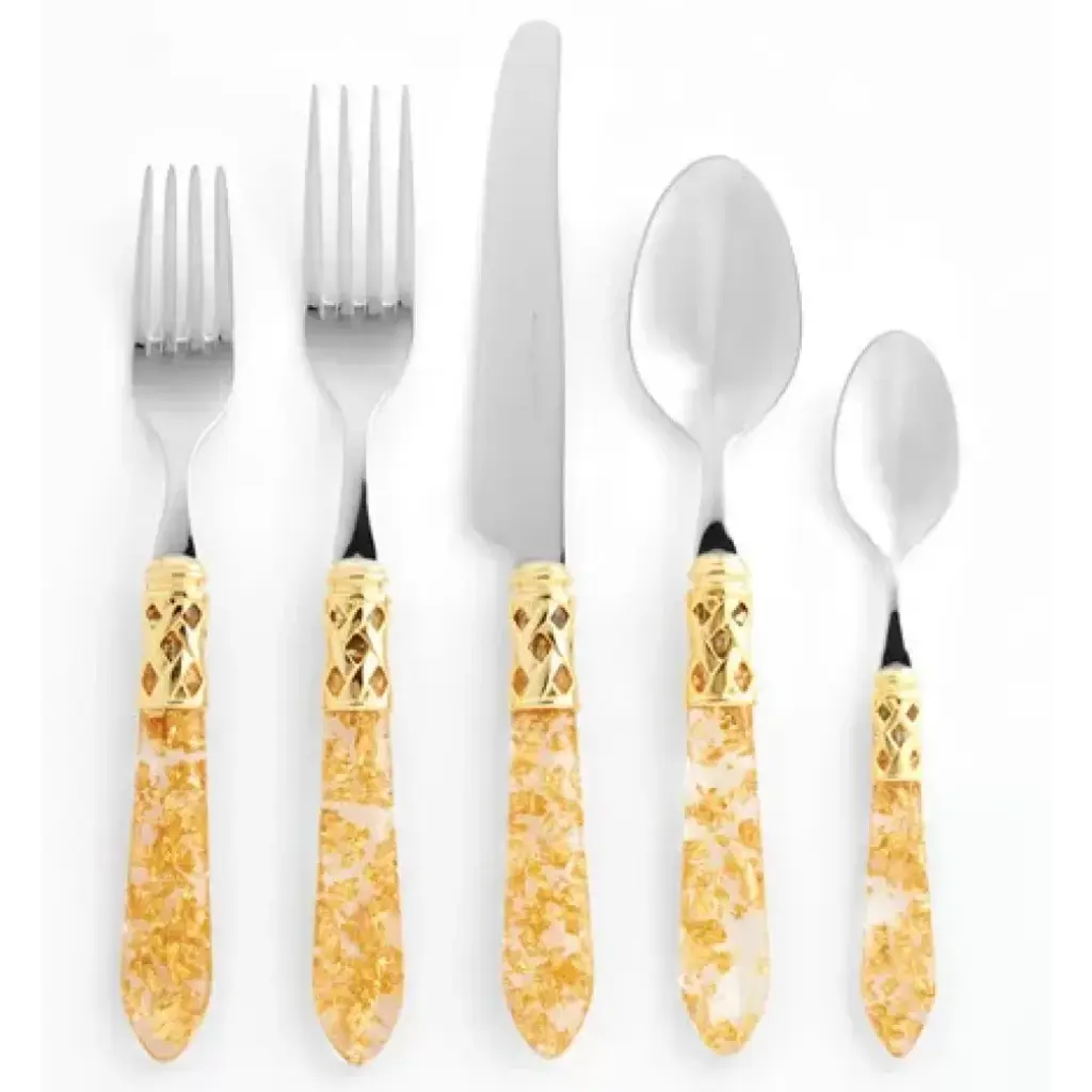 The Aladdin Brilliant Gold Fleck Cake Knife with gold lattice is a glamorous collection, featuring airy flecks of gold wrapped in intricate gold lattice. Since 1983, Vietri has specialized exclusively in Italian handcrafted ceramics, stainless and pewter flatware, mouth blown glassware, lamps, urns and planters. Families of artisans with 3 or 4 generations of history create these special pieces using centuries-old techniques. The subtle color from a paintbrush and the curving stroke of the artist's hand are never repeated in quite the same way, making each piece truly unique.