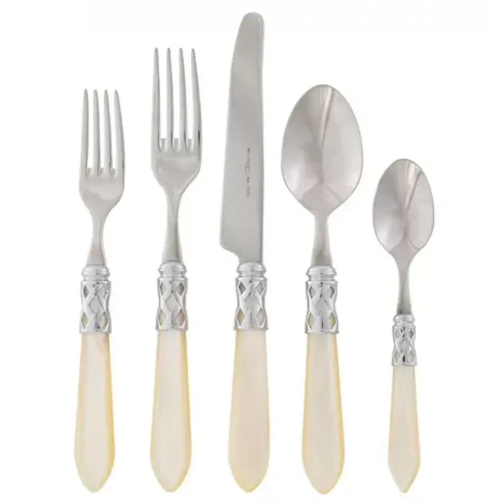 The Aladdin Brilliant Cake Knife features elegant pearlized handles with the strength of high-grade acrylic and 18/10 stainless steel. This piece is also available in our antique finish. Since 1983, Vietri has specialized exclusively in Italian handcrafted ceramics, stainless and pewter flatware, mouth blown glassware, lamps, urns and planters. Families of artisans with 3 or 4 generations of history create these special pieces using centuries-old techniques. The subtle color from a paintbrush and the curving stroke of the artist's hand are never repeated in quite the same way, making each piece truly unique.