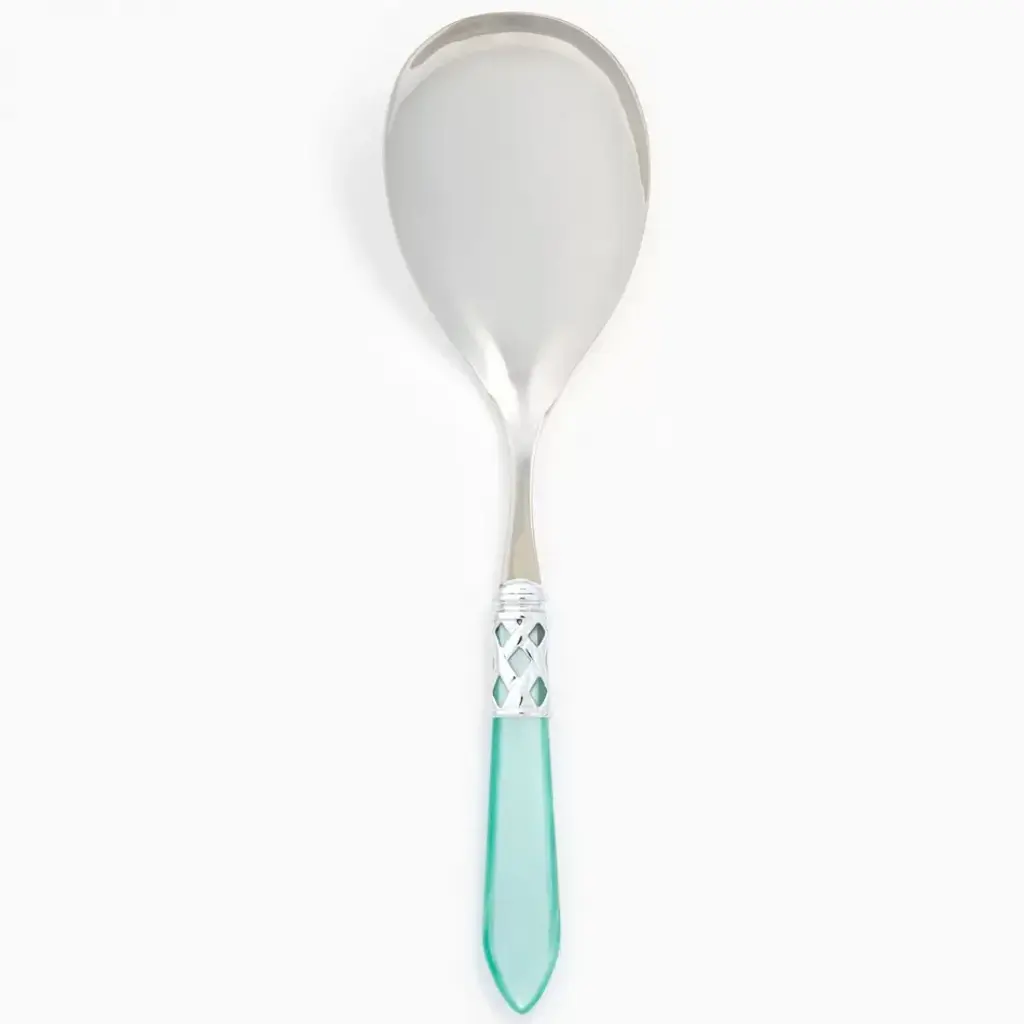 The Aladdin Brilliant Serving Spoon features elegant pearlized handles with the strength of high-grade acrylic and 18/10 stainless steel. This piece is also available in our antique finish. Since 1983, Vietri has specialized exclusively in Italian handcrafted ceramics, stainless and pewter flatware, mouth blown glassware, lamps, urns and planters. Families of artisans with 3 or 4 generations of history create these special pieces using centuries-old techniques. The subtle color from a paintbrush and the curving stroke of the artist's hand are never repeated in quite the same way, making each piece truly unique.