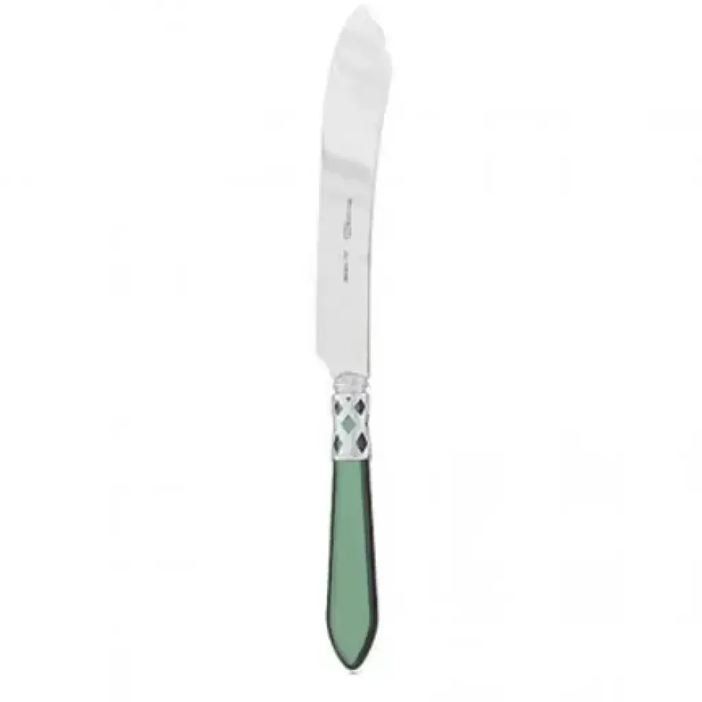 The Aladdin Brilliant Cake Knife features elegant pearlized handles with the strength of high-grade acrylic and 18/10 stainless steel. This piece is also available in our antique finish. Since 1983, Vietri has specialized exclusively in Italian handcrafted ceramics, stainless and pewter flatware, mouth blown glassware, lamps, urns and planters. Families of artisans with 3 or 4 generations of history create these special pieces using centuries-old techniques. The subtle color from a paintbrush and the curving stroke of the artist's hand are never repeated in quite the same way, making each piece truly unique.