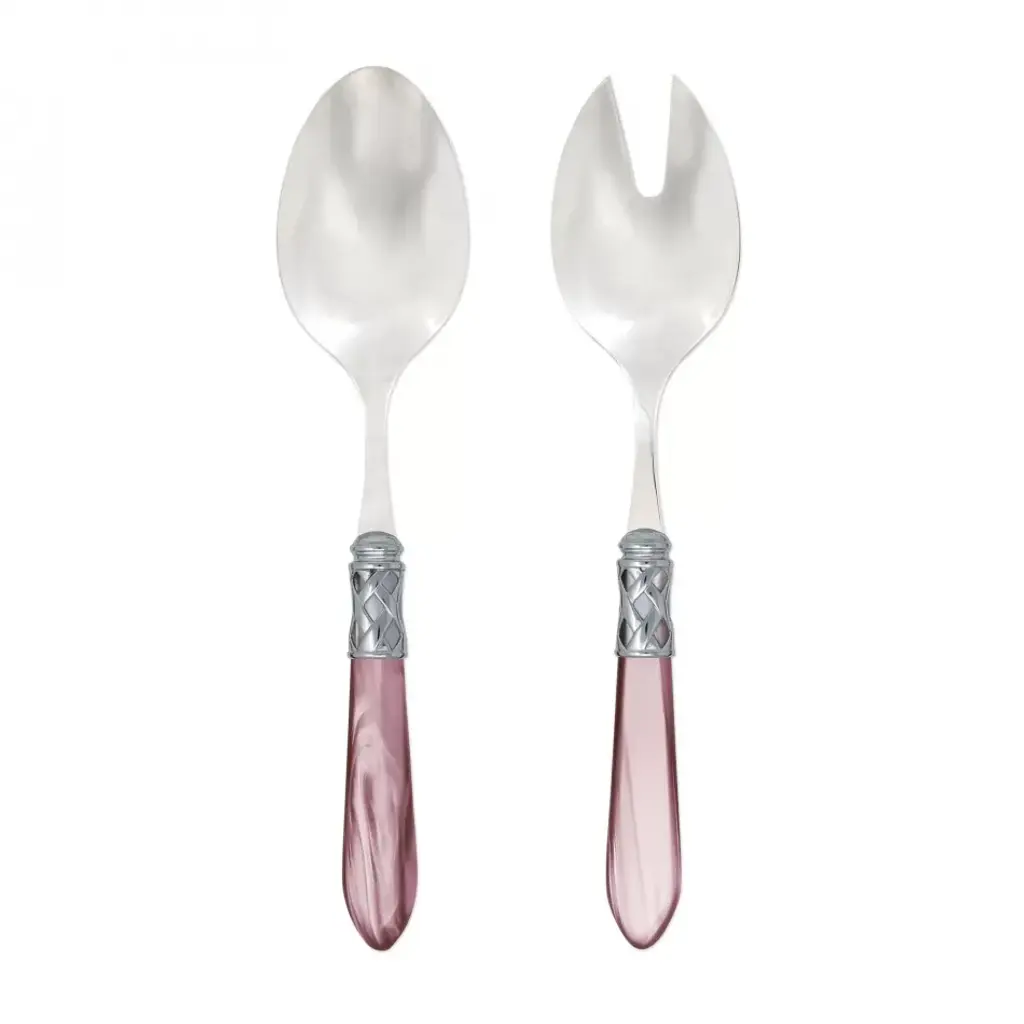 The Aladdin Brilliant Salad Server Set features elegant pearlized handles with the strength of high-grade acrylic and 18/10 stainless steel. This piece is also available in our antique finish. Since 1983, Vietri has specialized exclusively in Italian handcrafted ceramics, stainless and pewter flatware, mouth blown glassware, lamps, urns and planters. Families of artisans with 3 or 4 generations of history create these special pieces using centuries-old techniques. The subtle color from a paintbrush and the curving stroke of the artist's hand are never repeated in quite the same way, making each piece truly unique.