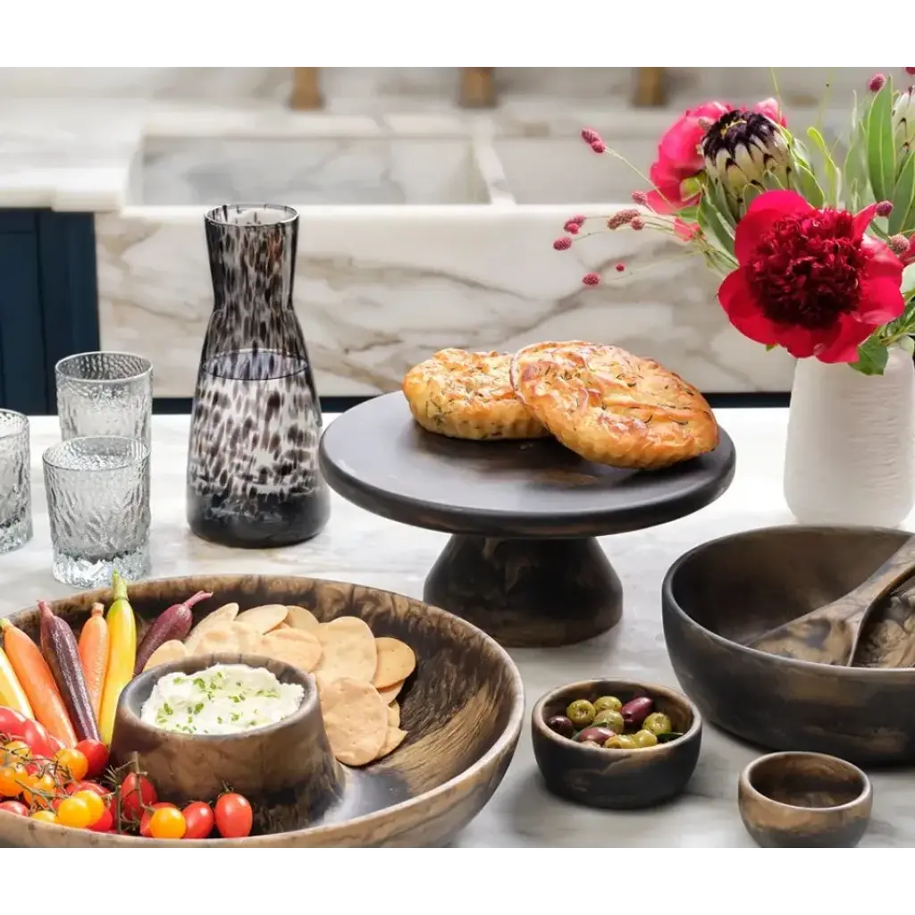 Enjoy a moody ambience with our Alaia carafes. Hand blown from glass in two unique finishes. Blue Pheasant's products are handmade with care by artisans using natural materials. They are not mass produced, so variation between products should be expected, and this is why we love them! It is these irregularities that makes Blue Pheasant what it is—a special brand whose collections are distinctly handmade, full of charm and originality you’ll never find in machine-made products.