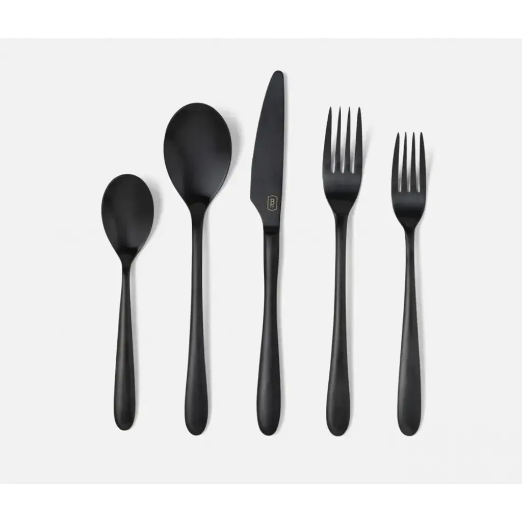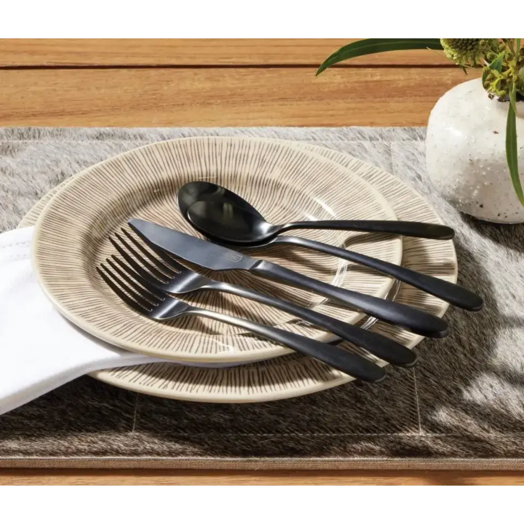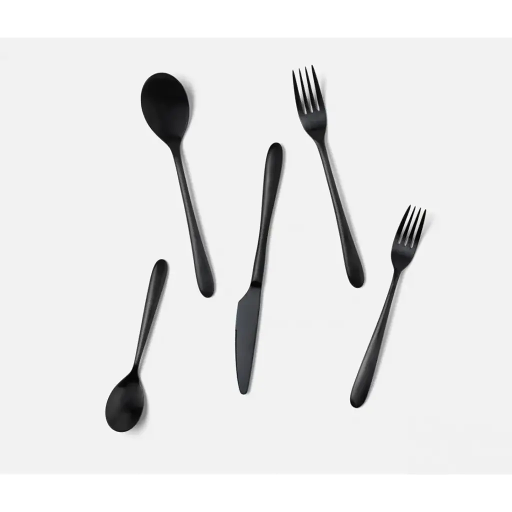Alba Black Flatware, 5-Piece Set: Knife, Dinner Fork, Salad Fork, Soup Spoon, Tea Spoon