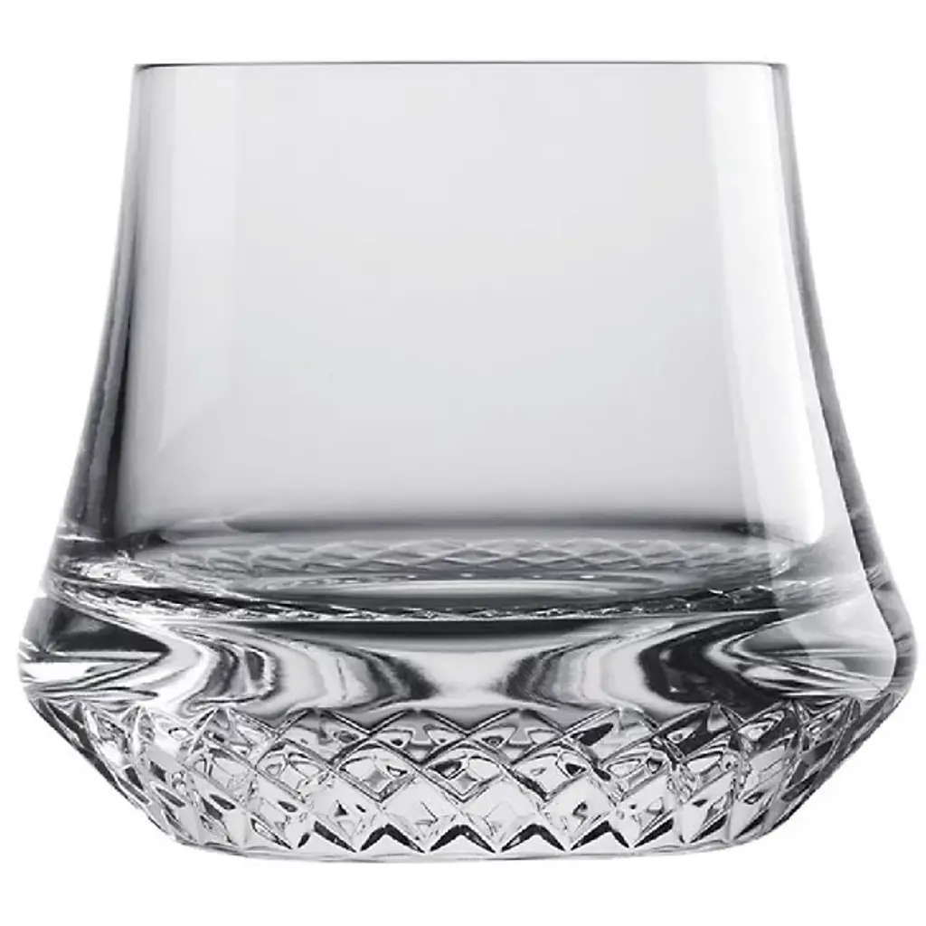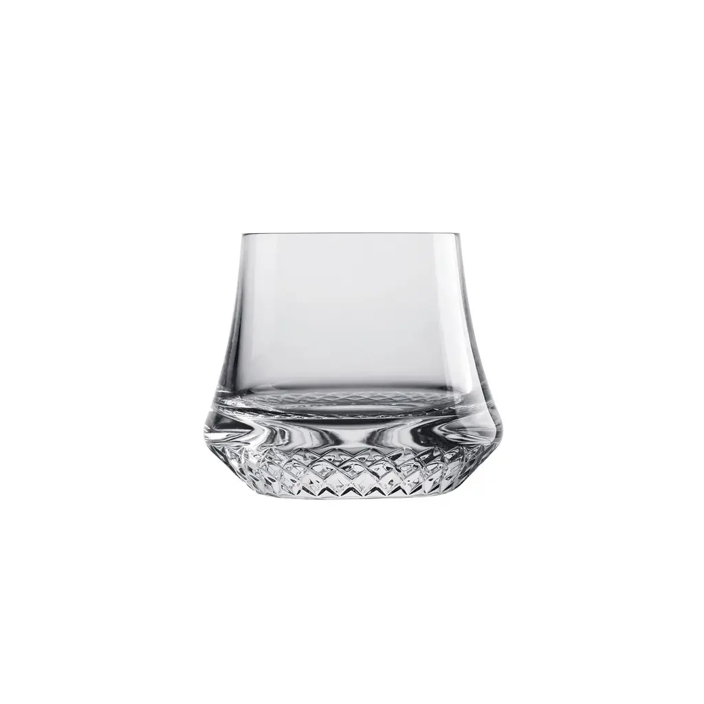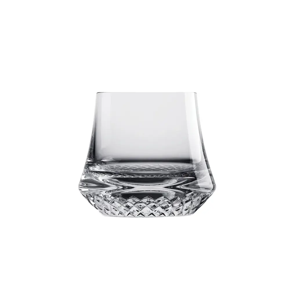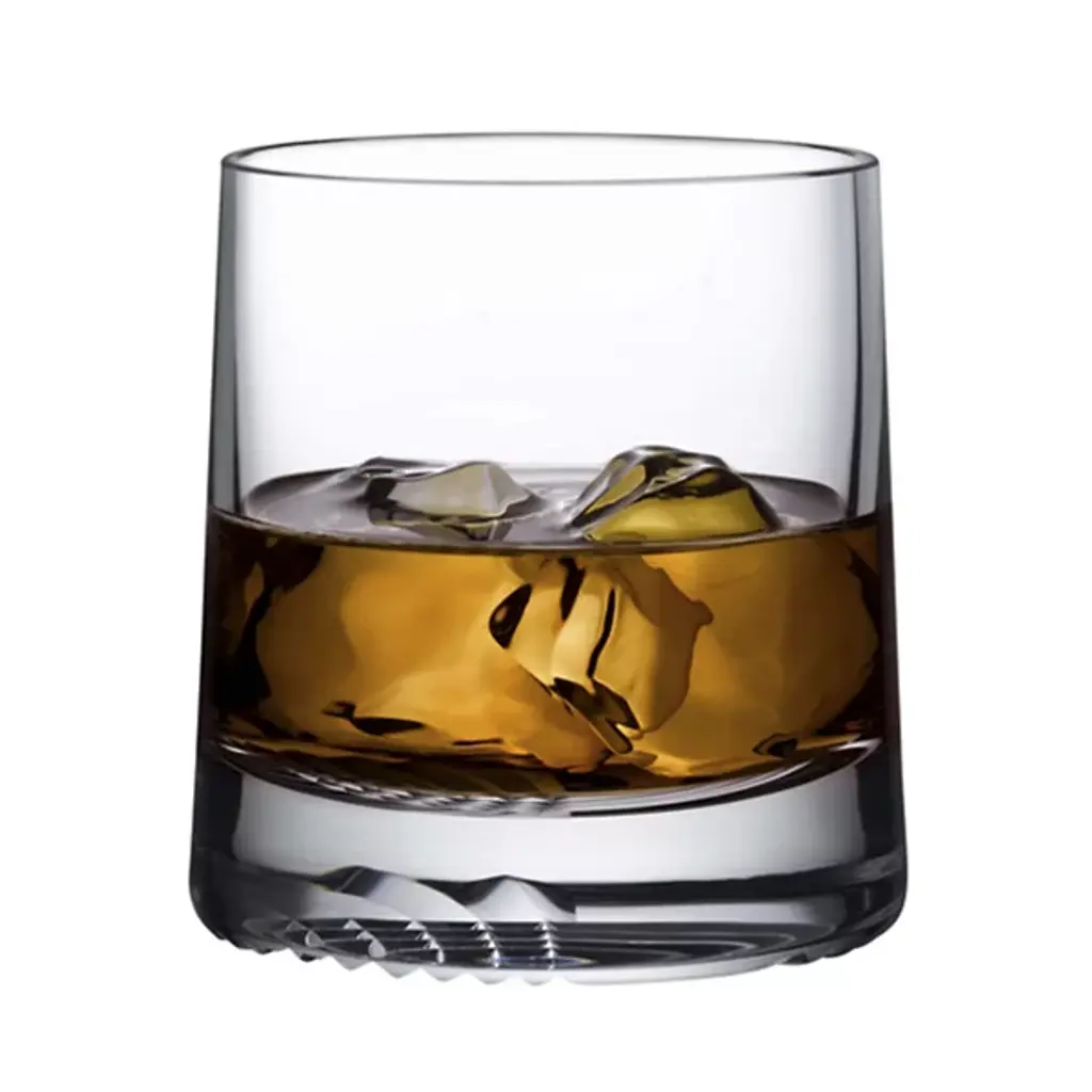 The Alba Whisky SOF Glasses, Set of 2 from Nude honors Scottish whisky tradition through its deconstructed tartan pattern, hand-engraved into the heavy crystal base, which creates textural depth beneath the smooth drinking surface. Designed by Joe Doucet and crafted in Turkey from lead-free crystal, each glass features a tapered shape that feels substantial in hand. The engraved pattern catches the light and adds tactile interest to the bottom portion, while the clear upper bowl maintains perfect clarity for appreciating the whisky's color.