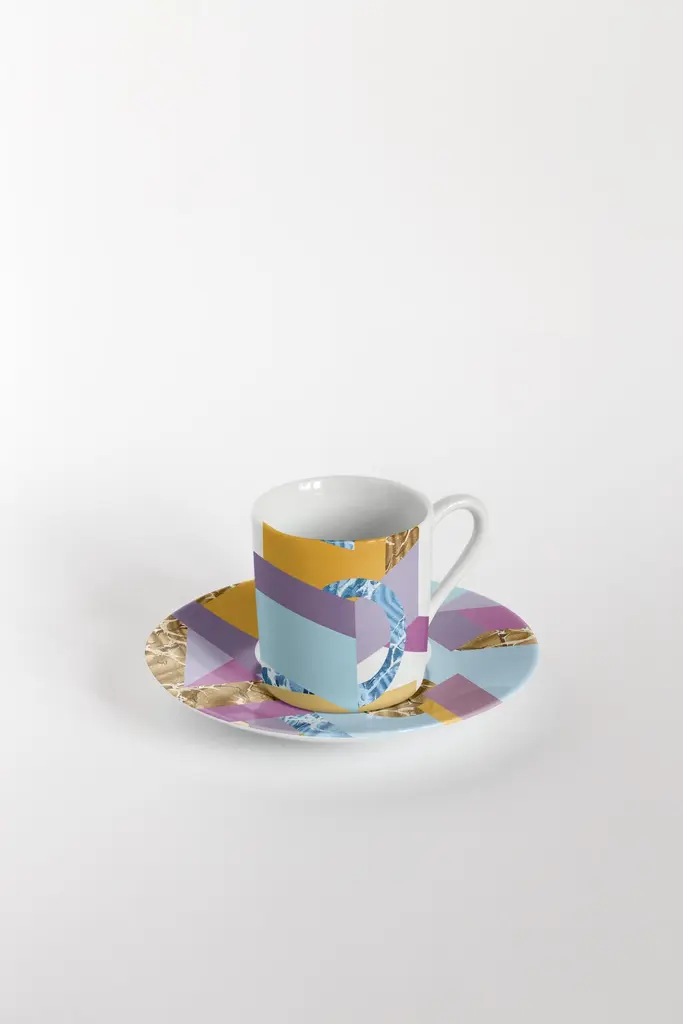 Vito Nesta e Alessandro Guerriero hanno unito le loro forze per creare la collezione Alchimie, diversi prodotti, dalle porcellane ai tessuti, che riporta ai giorni nostri gli stilemi che caratterizzarono lo studio Alchimia, fondato da Guerriero stesso nel 1976. Colori vibranti, contrasti forti, forme geometriche semplici e non si incastonano e dialogano fra di loro, creando dei piccoli universi di pura bellezza visiva. Il tocco d’innovazione apportato all’interno di queste grafiche è l’uso di diverse texture che si uniscono al disegno astratto, rendendolo ancora più accattivante e divertente.Set da caffè per 6 persone comprensivo di piattini.