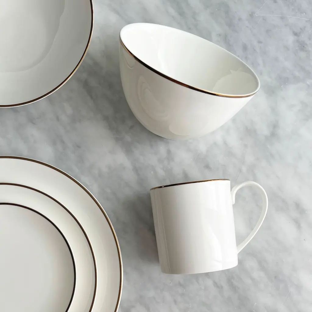 The Alex collection showcases the modern look of the classic Gold on Fine Bone China combination with a thinner rim than the original Alex Gold collection. Unlike previous Gold rim products, Alex Gold products are microwave safe increasing convenience and versatility to accommodate our fast-moving environment.