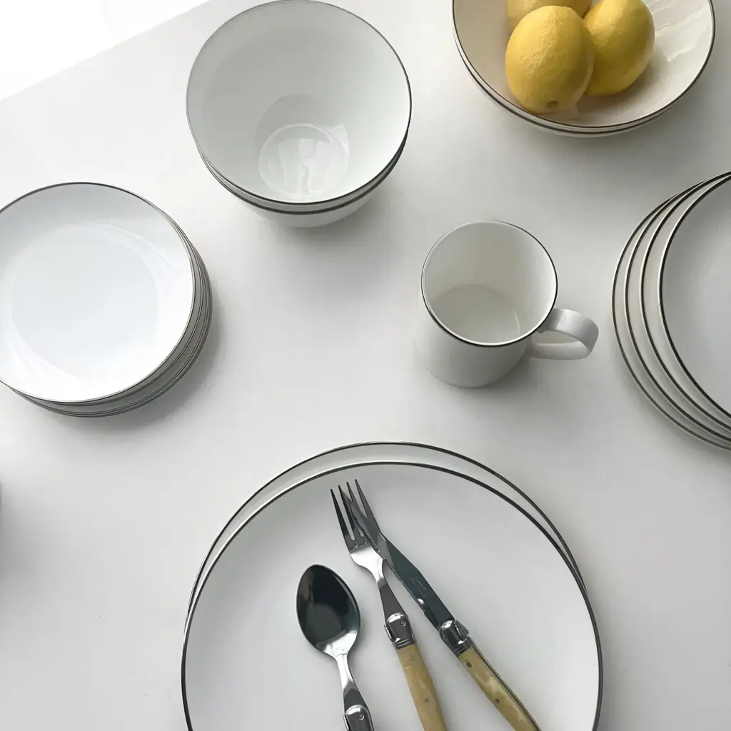 The Alex collection showcases the modern look of the classic Platinum on Fine Bone China combination with a thinner rim than the original Platinum Edge collection. Unlike previous Platinum rim products, Alex Platinum products are microwave safe increasing convenience and versatility to accommodate our fast-moving environment.