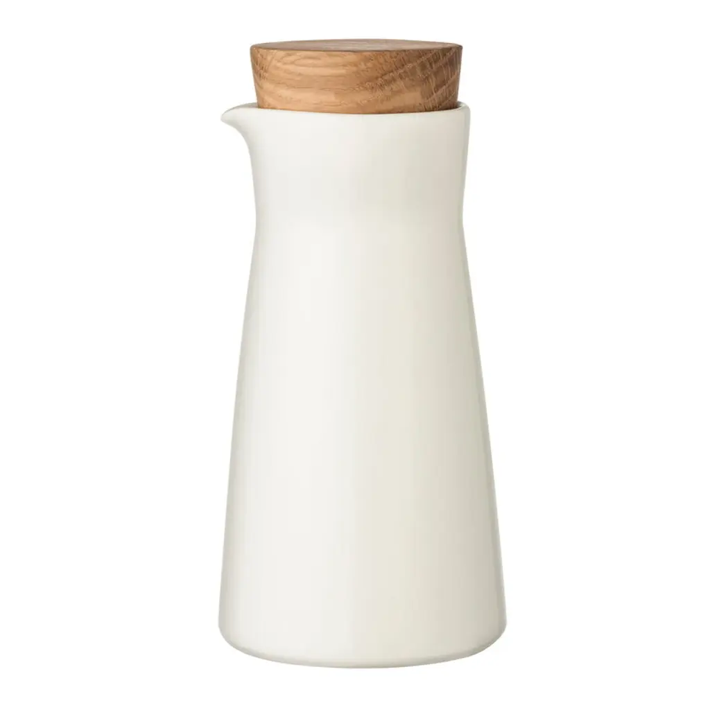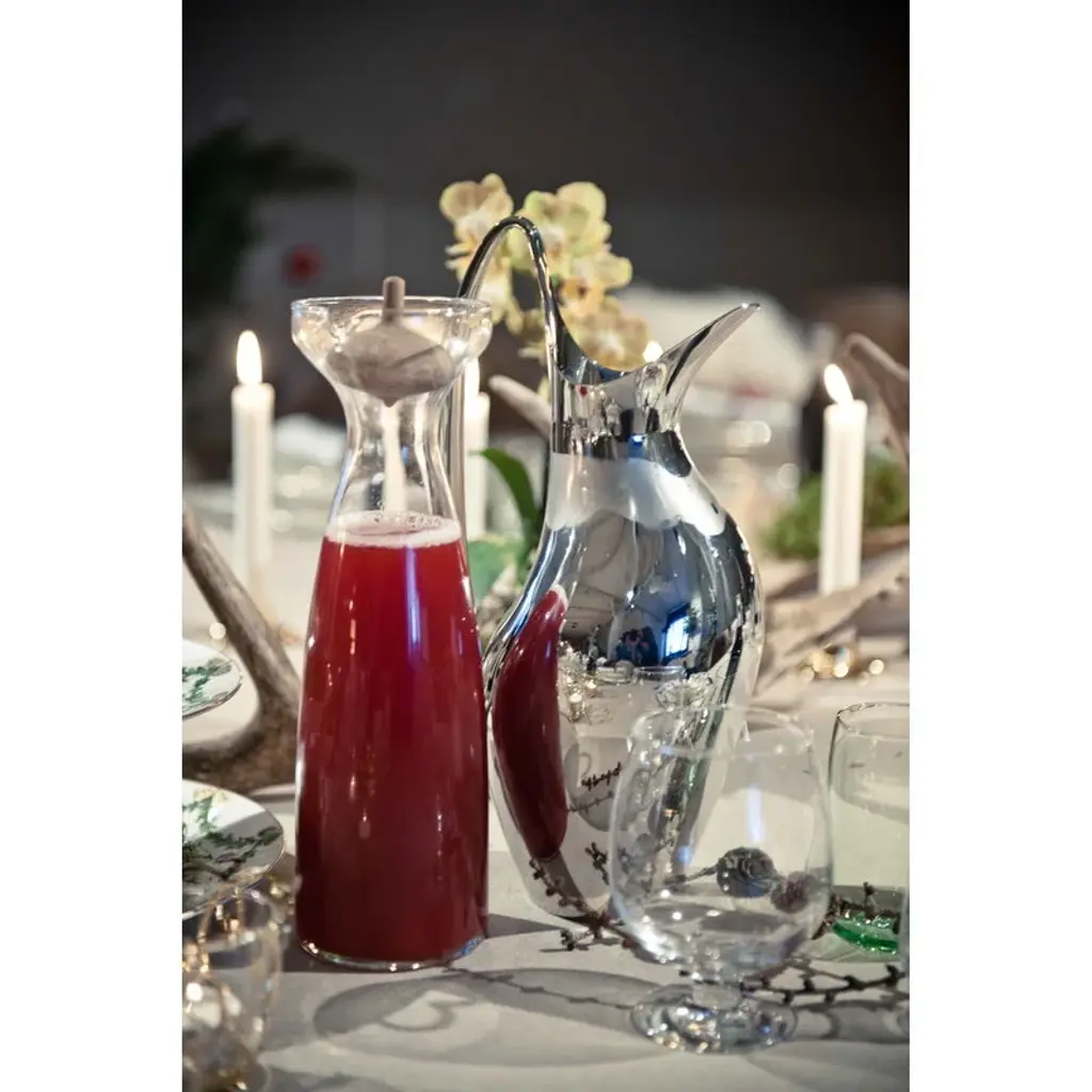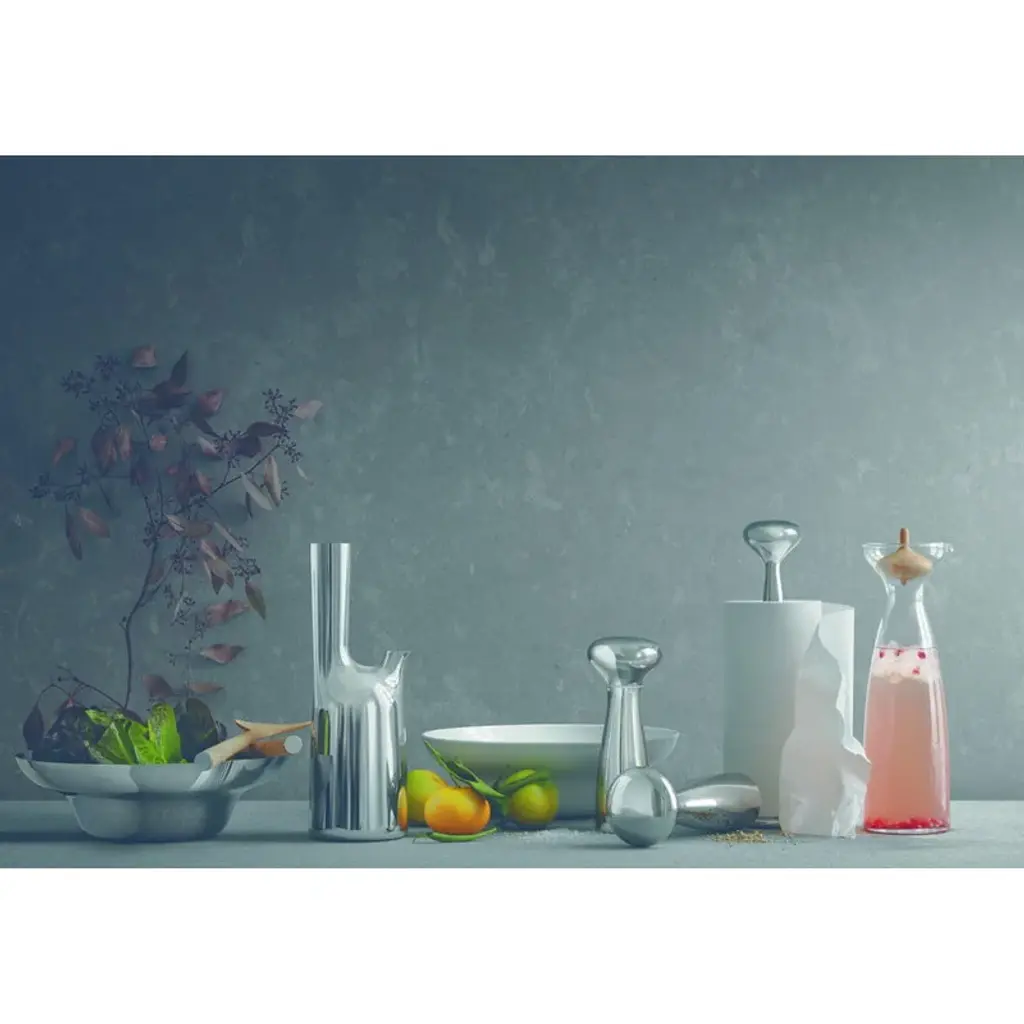 The Alfredo carafe has been designed for Georg Jensen by Alfredo Häberli. The Alfredo carafe is elegantly shaped in glass and has a peculiar stopper crafted in oak. The materials complement one another, and the final result is harmonious. Daily rituals should make us feel good. When we love the things we use, we enjoy these rituals more. The Alfredo carafe is the perfect object to add style to your routine. The Alfredo carafe is ideal for pouring water or juice and can contain up to 1 liter.