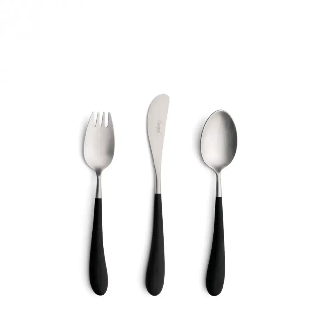 Alice 3-Pc Children's Flatware Set (Knife, Fork, Spoon) - Black Gold Matte