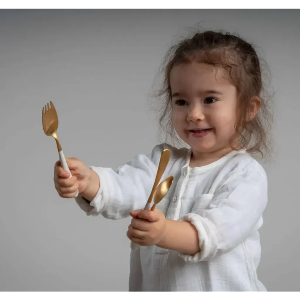 Alice 3-Pc Children's Flatware Set (Knife, Fork, Spoon) - Ivory Gold Matte