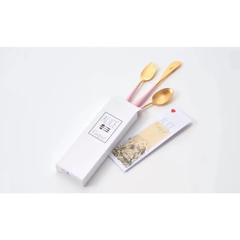 Alice 3-Pc Children's Flatware Set (Knife, Fork, Spoon) - Pink Gold Matte