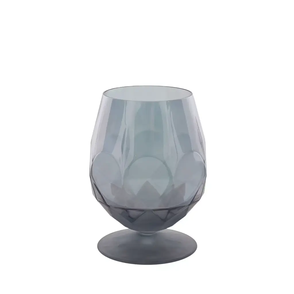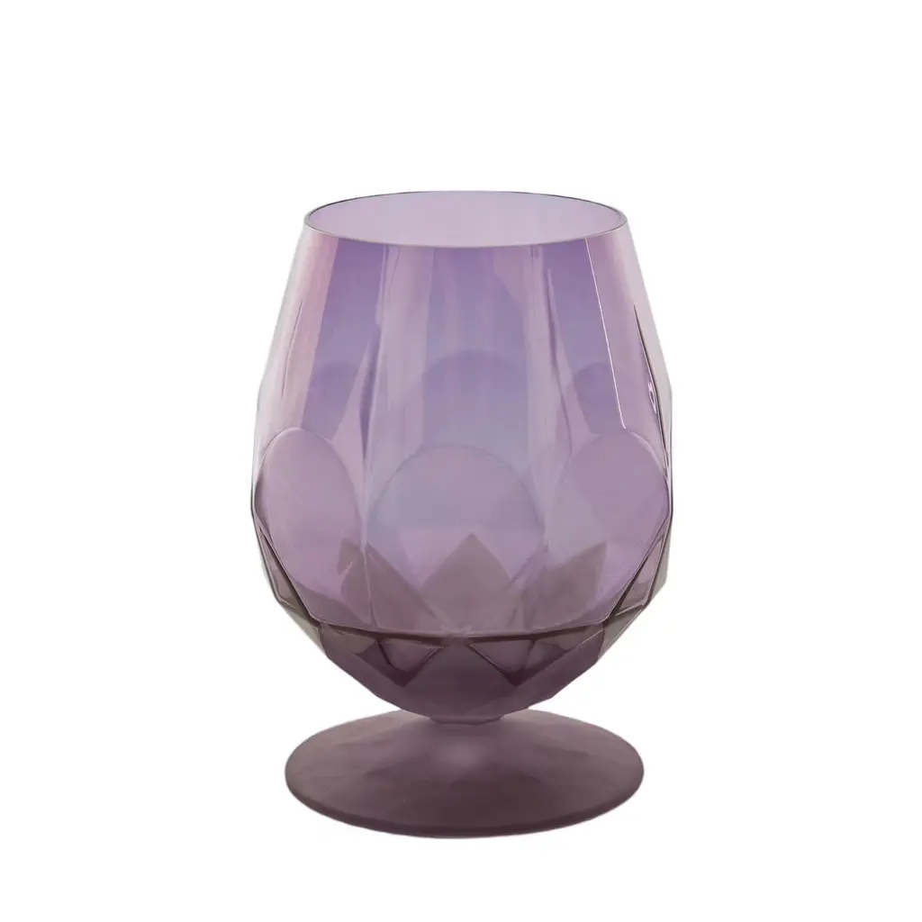 Modern and sophisticated aesthetic meets the lively character of a rainbow palette in this singular glassware set, composed of six glasses. Featuring a round base sustaining a bulging and capacious bowl, each piece is fashioned of sandblasted glass showcasing a different color for an eclectic and vivacious look. Entirely crafted and decorated by hand using traditional methods.