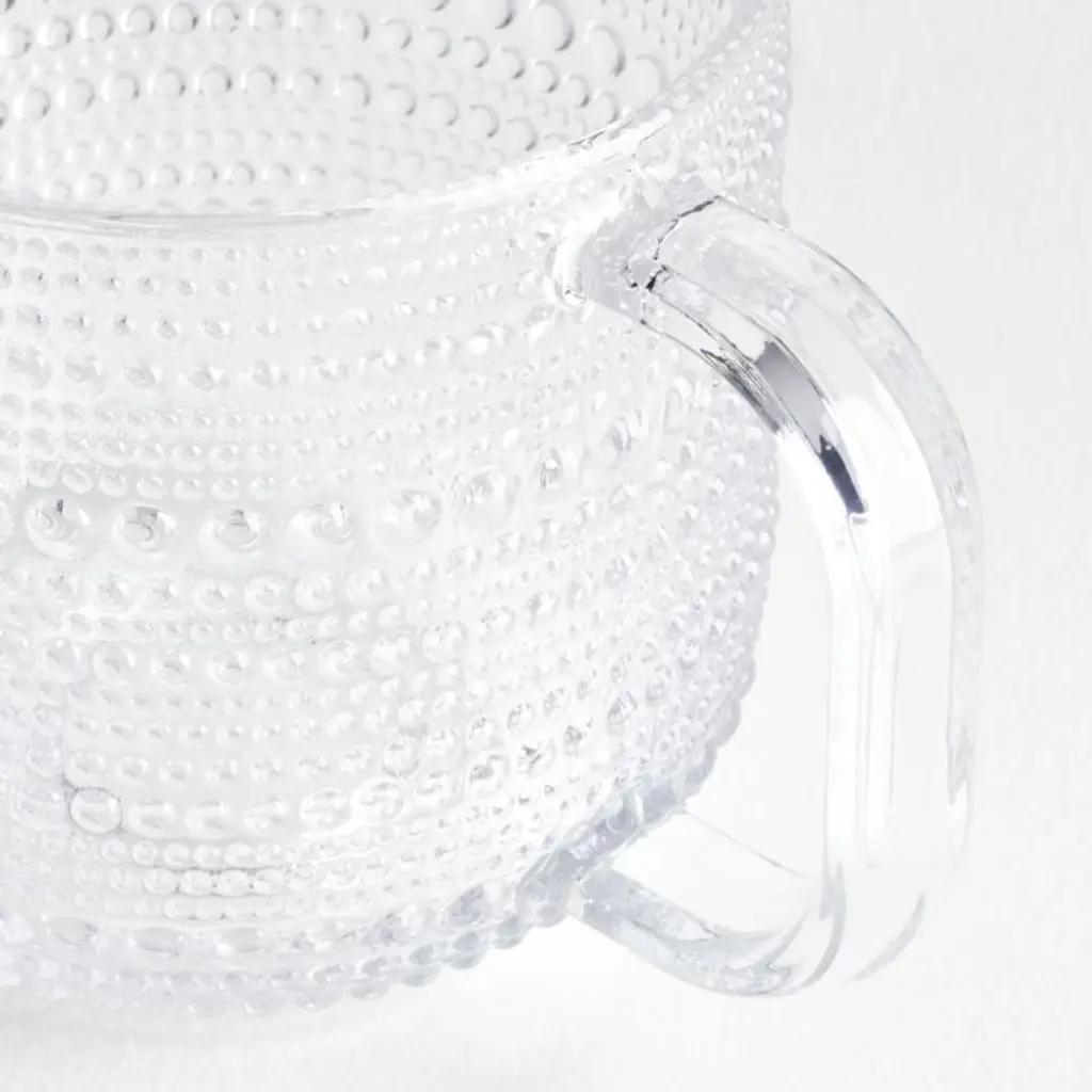 Inspired by Parisian flea market finds, the Alma mug brings fascinating texture to hot coffee or tea. The clear glass mug is molded with bands of petite beads that give Alma its charming vintage appeal. Upgrade your daily brew or finish up a meal in style with this delightful mug.