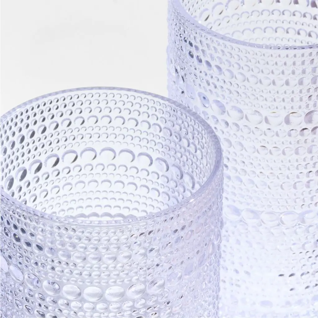 Inspired by Parisian flea market finds, our clear Alma highball glass brings fascinating texture and the convenience of shatterproof acrylic to cocktail hour. Bands of petite beads add vintage charm, turning mixed drinks, soda or iced tea into special sips.