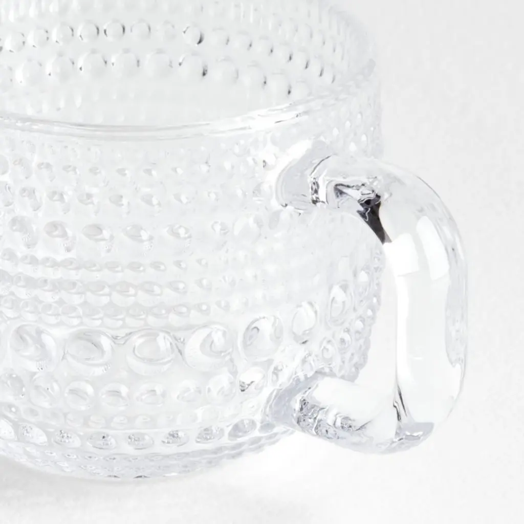 Inspired by Parisian flea market finds, the Alma mug brings fascinating texture to freshly pulled espresso. The clear glass mini mug is molded with bands of petite beads that give Alma its charming vintage appeal. Upgrade your coffee hour with a set or pack a couple up along with some of our espresso spoons for an easy gift.